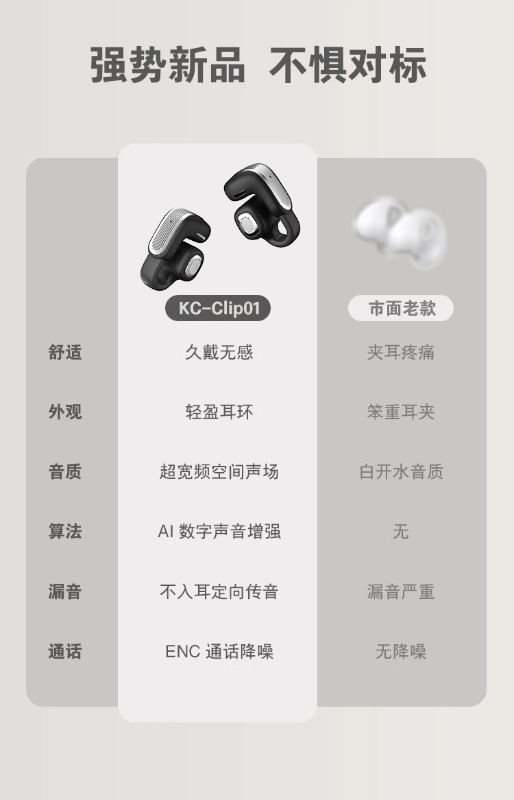 Huaqiangbei 새로운 CLIP 01 귀 클립 긴 내구성 ANC 소음 감소 스포츠 블루투스 헤드셋 무선 높은 음질스토어 가기