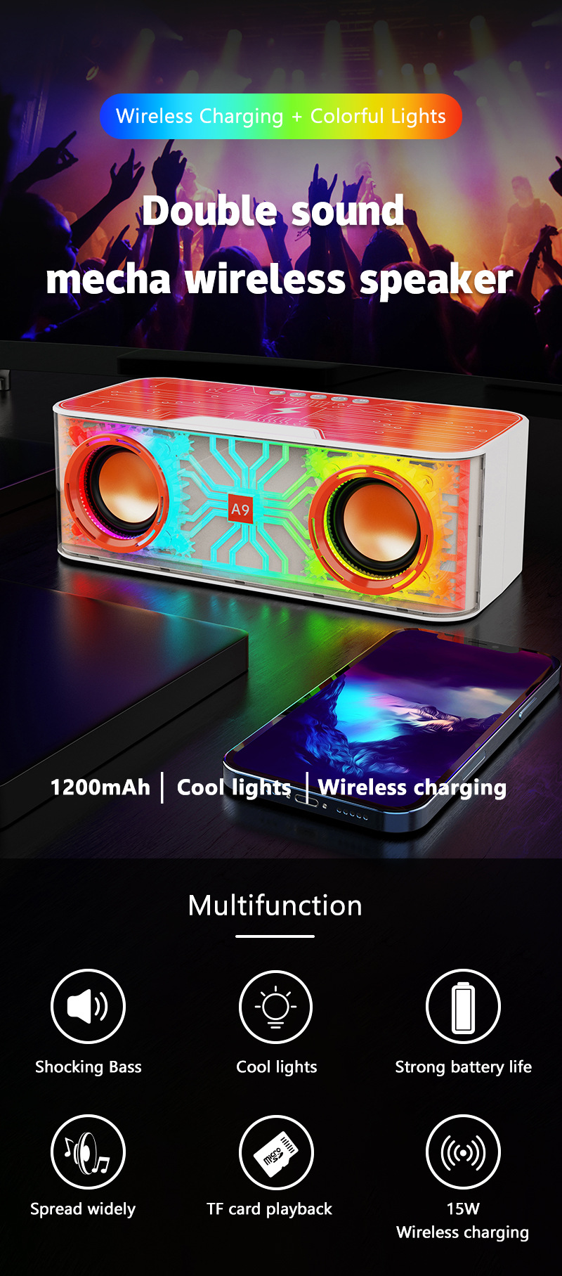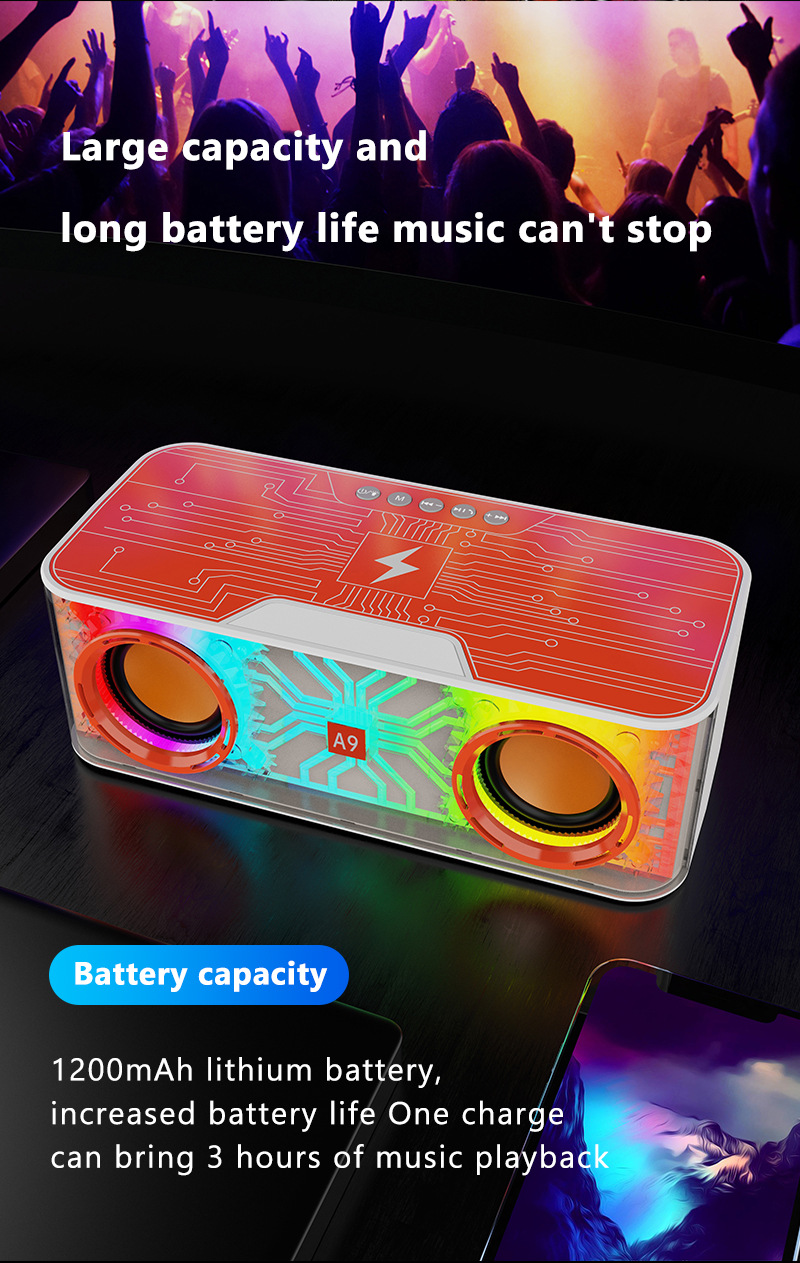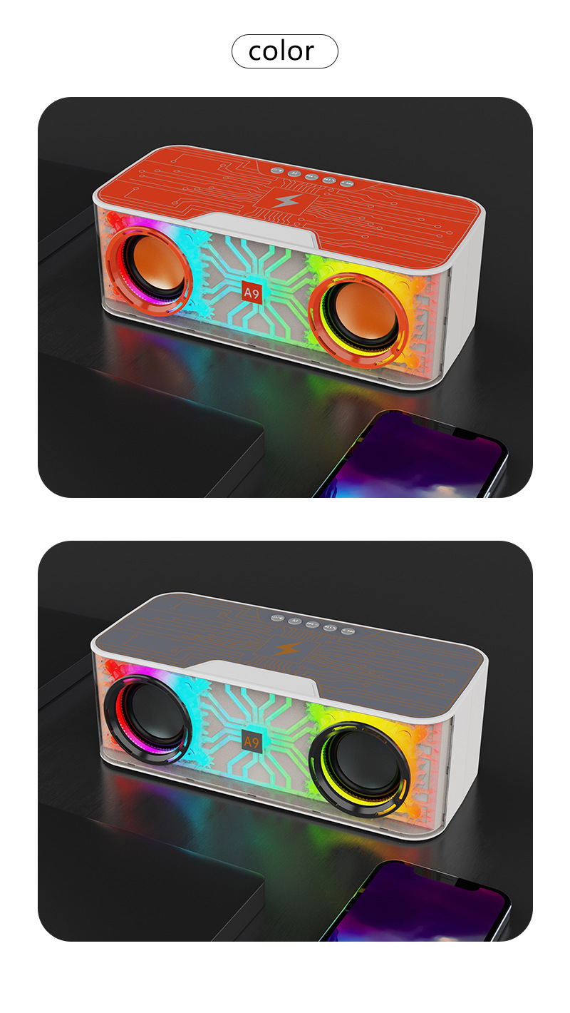 A9 듀얼 스피커 블루투스 스피커 시원한 야외 데스크탑 분위기 밤 빛 높은 전원 서브 우퍼 무선 블루투스 스피커스토어 가기