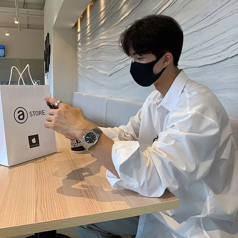 남성용 여름 얇고 가벼운 성숙한 스타일의 드레이프 홍콩 스타일 일본식 흰색 느슨한 긴팔 셔츠 캐주얼 재킷스토어 가기