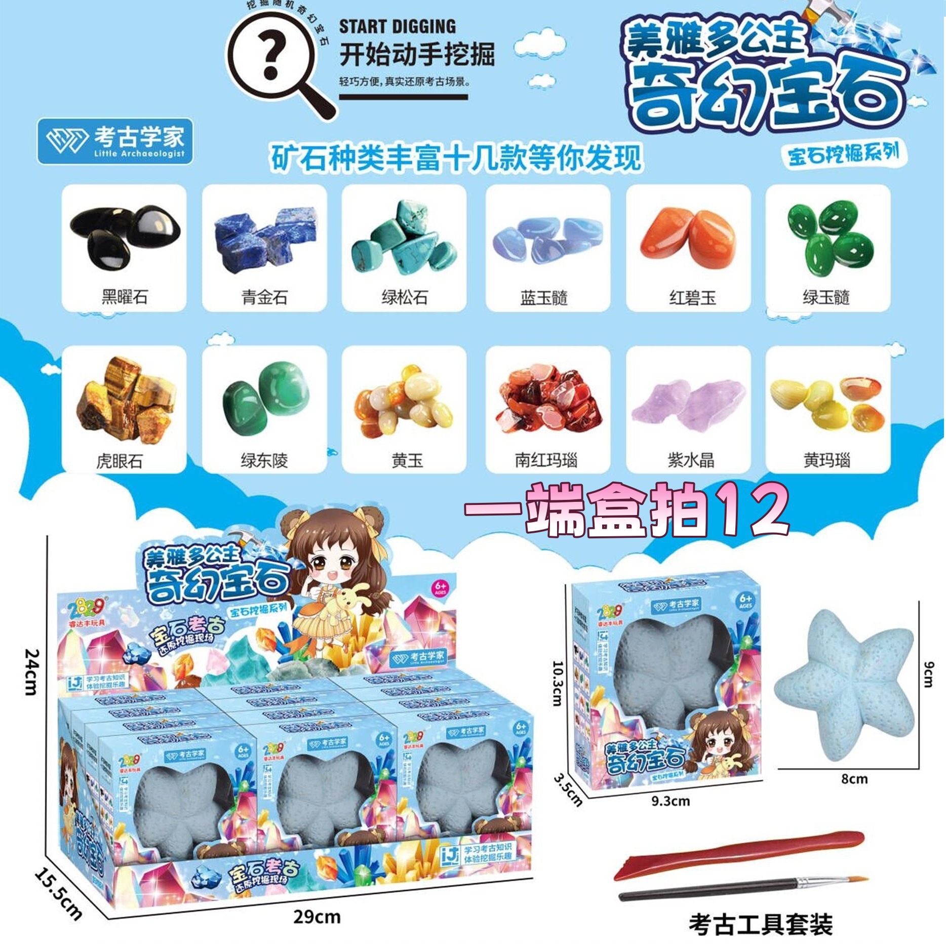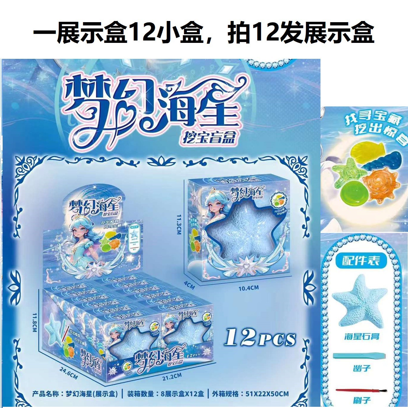 • 메야도 불가사리 보석 고고학 발굴 석고 블라인드 박스 [한쪽 끝 상자 12발]