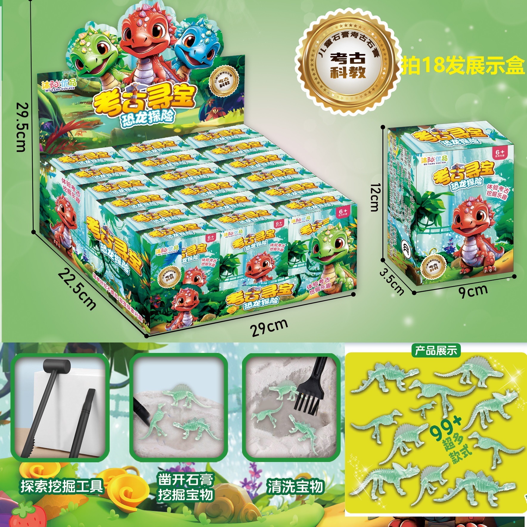 • 야광 공룡 고고학 발굴 석고 블라인드 박스 [한쪽 끝 상자 샷 18]