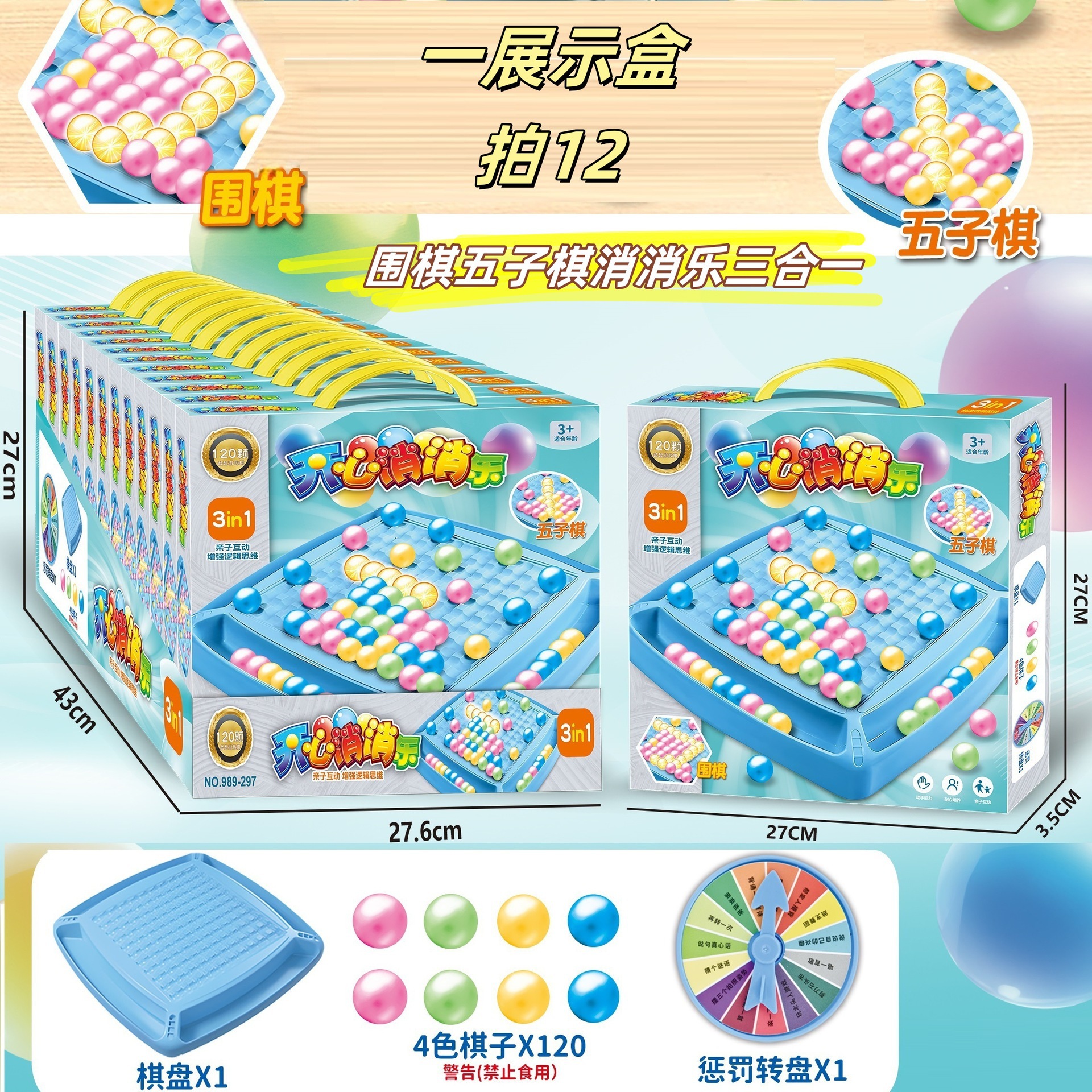 • 대형 Xiaoxiaole 3-in-1 게임 플레이 체스 말 120개 [디스플레이 상자 1개에 12개]