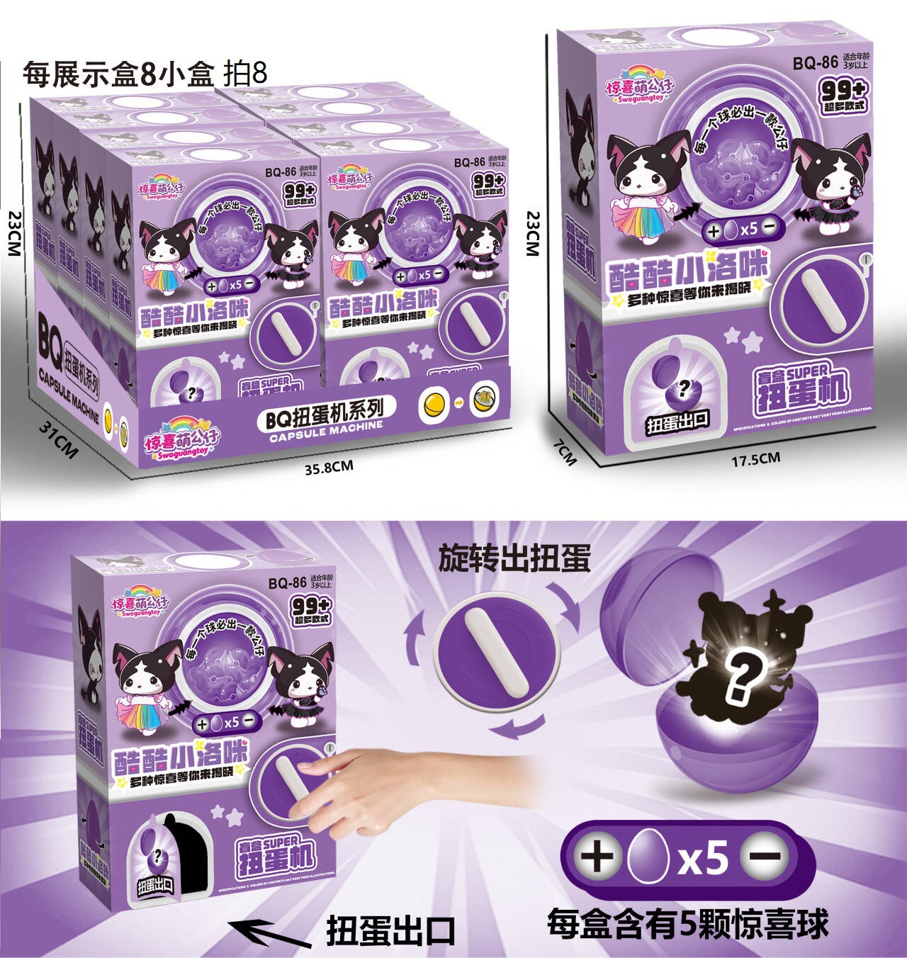 • 계란 5개를 넣은 만화 꼬집는 가샤폰 기계 [디스플레이 상자 1개에 8발]