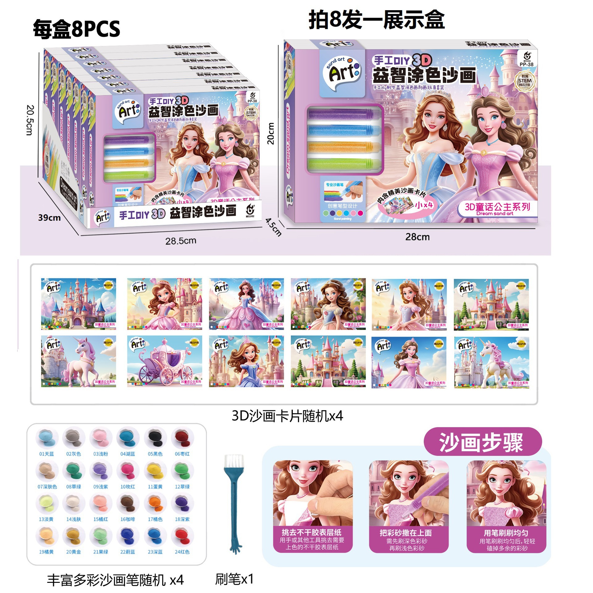 • 공주 모래 그림 9점 세트 [디스플레이 상자 1개에 8개]