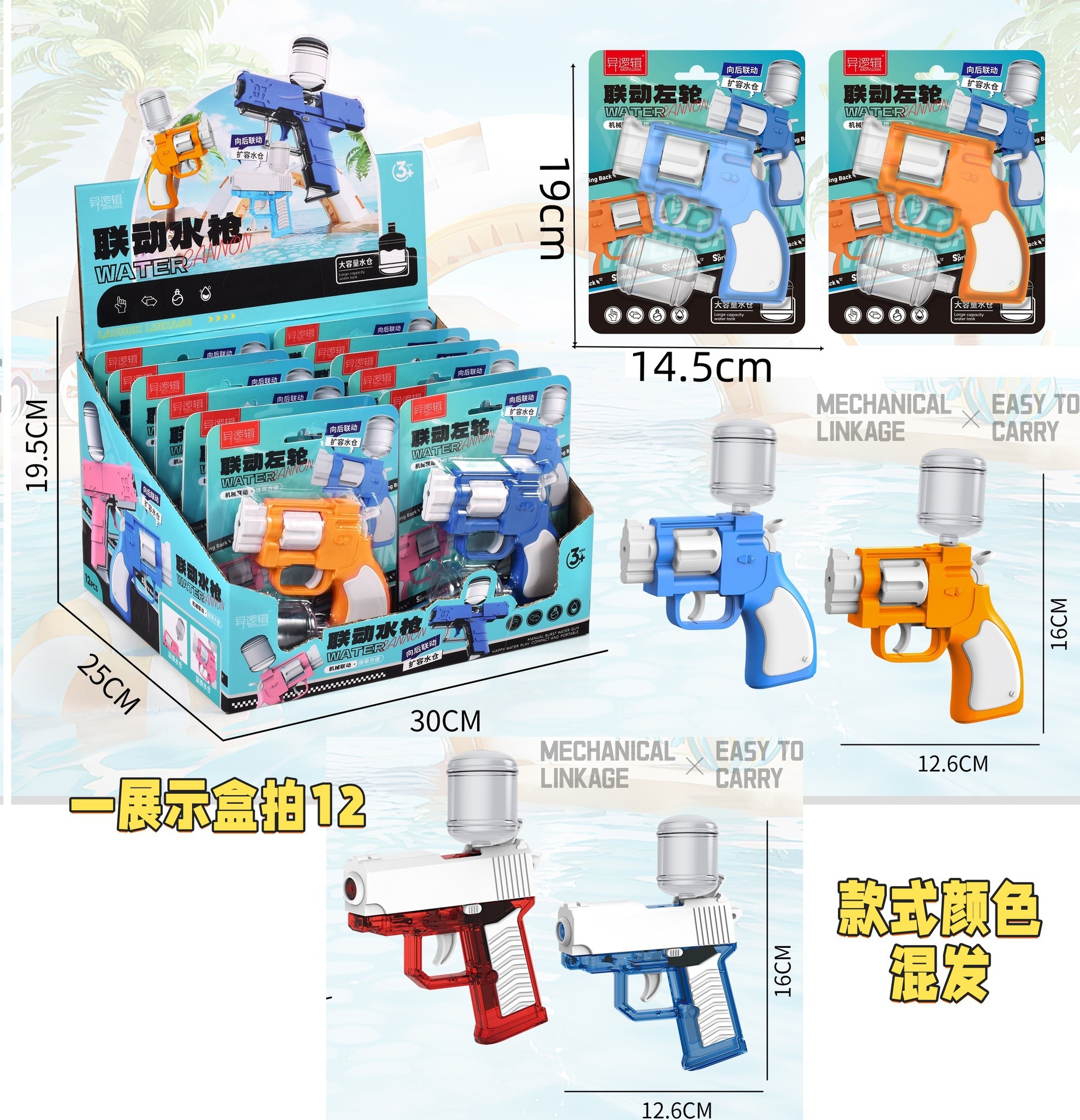 • 확장 버킷이 포함된 기계식 연동 물총 [한쪽 끝 상자에 12발]
