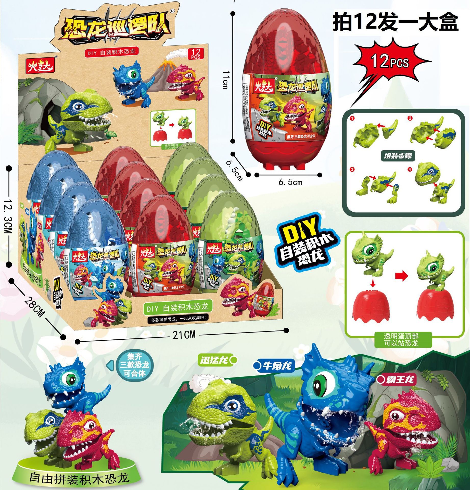 • 공룡 블록 블라인드 에그 조립 [한쪽 끝 상자 12발]