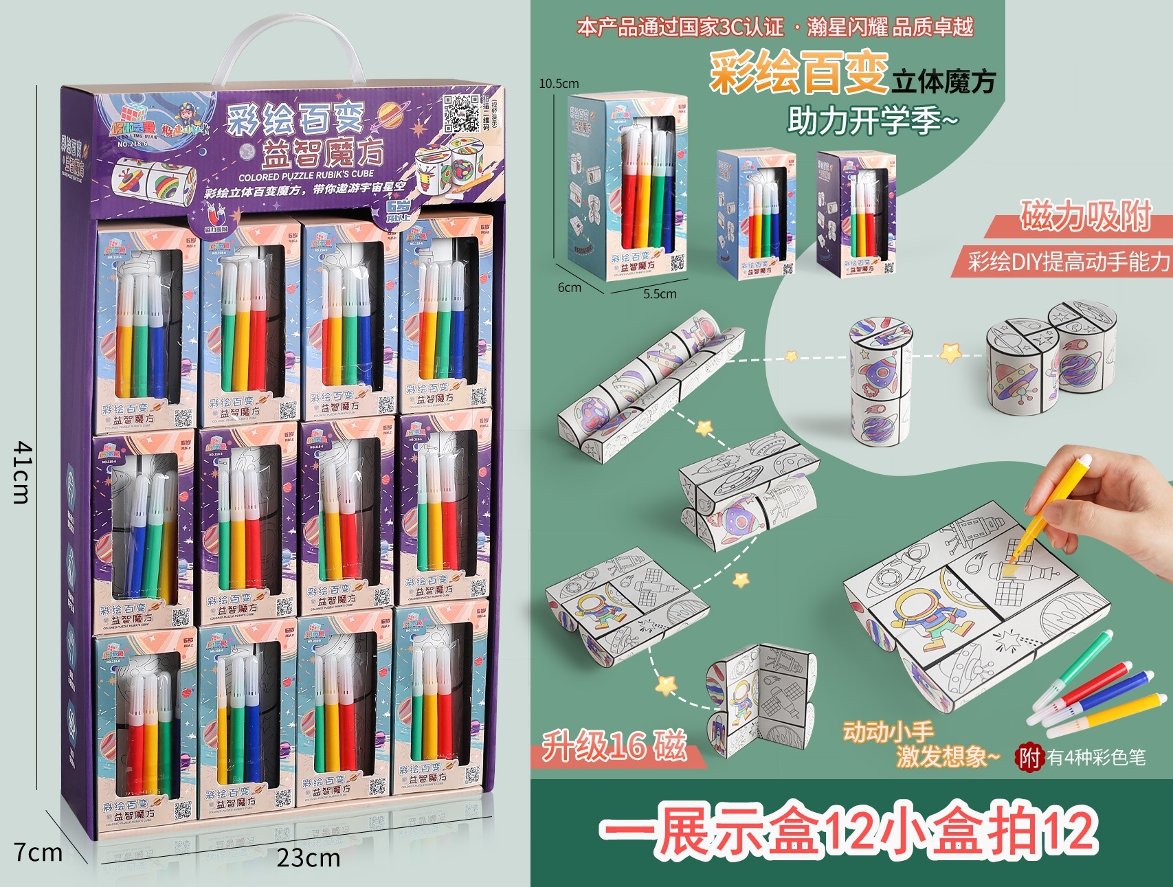• 다양한 자석 루빅스 큐브 페인팅 세트 [한쪽 끝 상자에 12개]