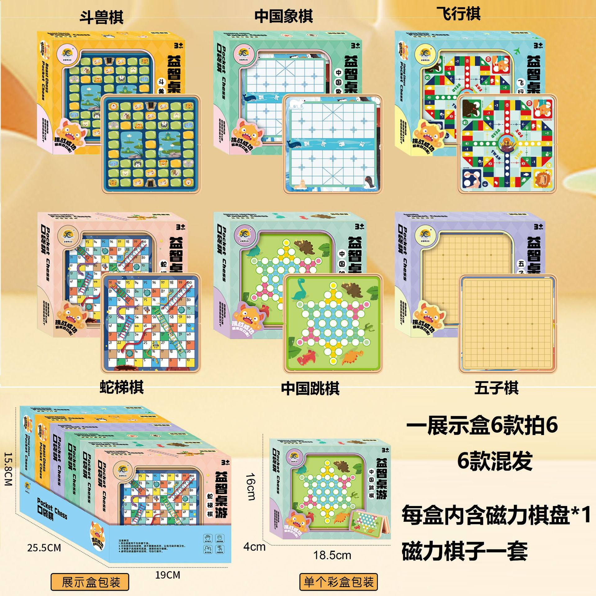 • 중형 Xiaoxiaole 3-in-1 게임 플레이 체스 말 64개 [1개의 행잉 보드 샷 9]