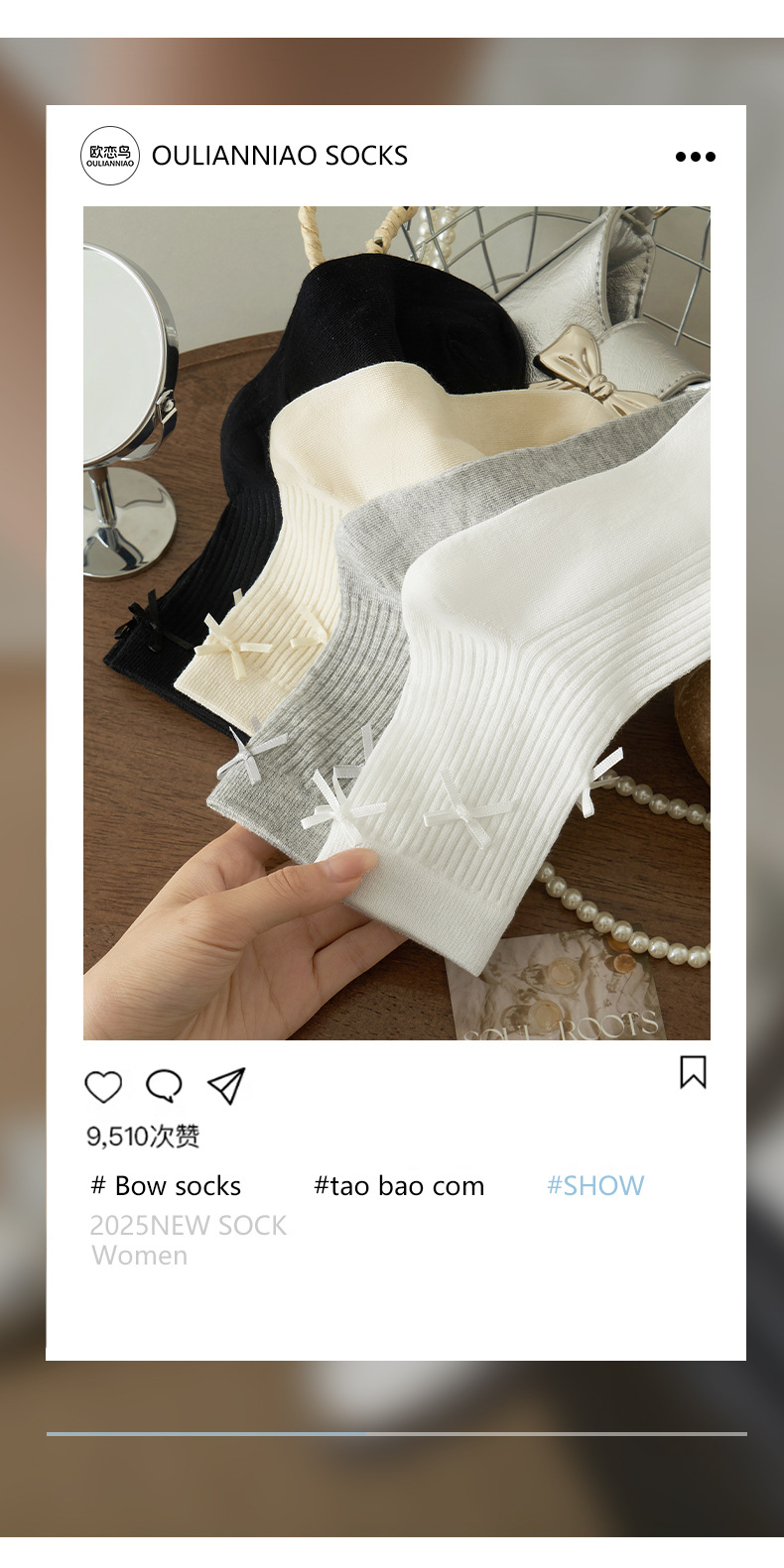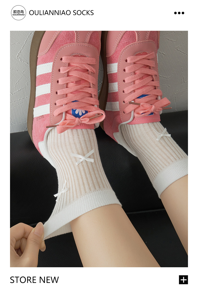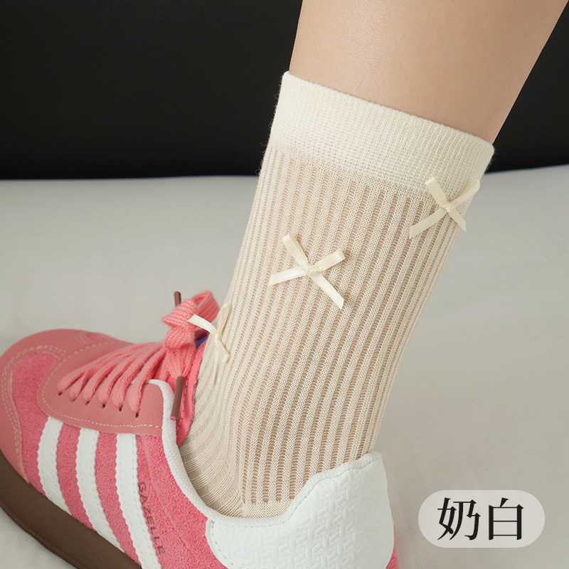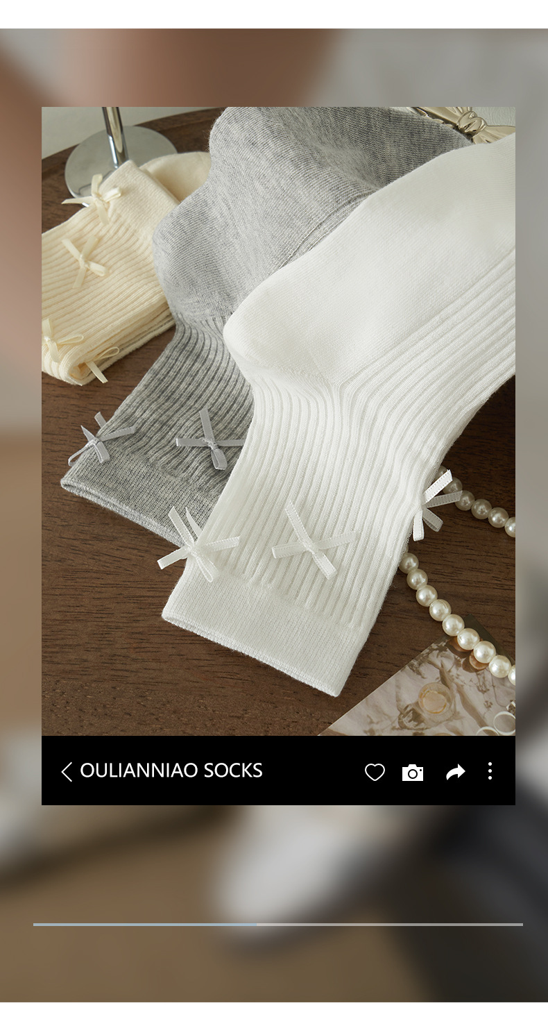 Oulianbird 양말 여성용 종아리 중간 양말 여름 얇은 리본 miu 그레이 발레 스타일 짧은 양말 Zhuji