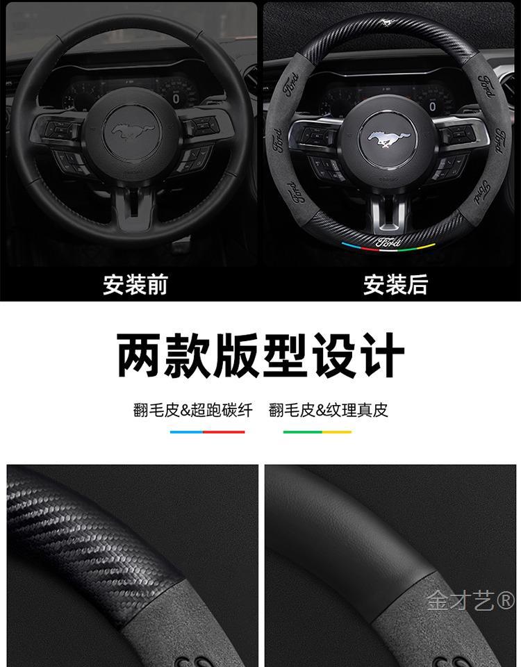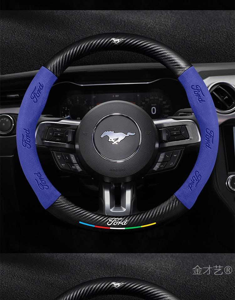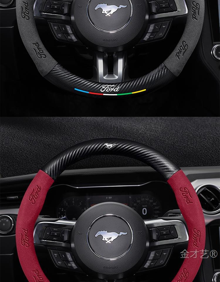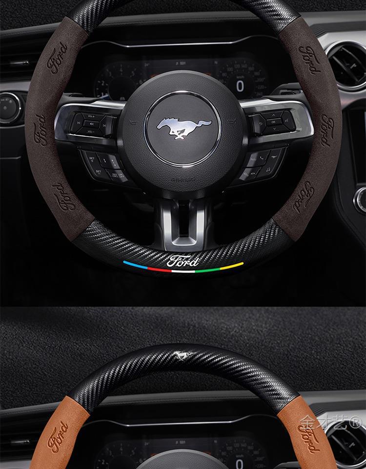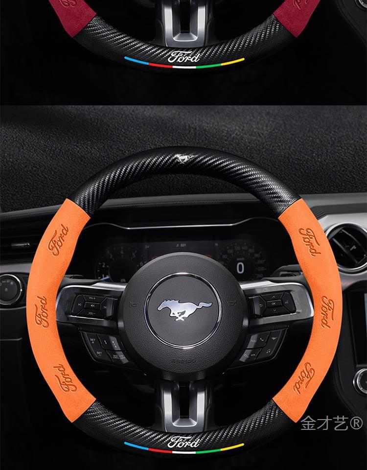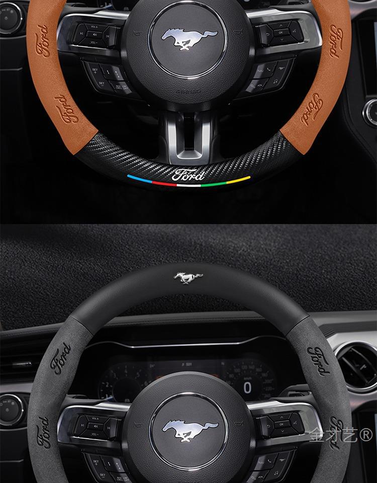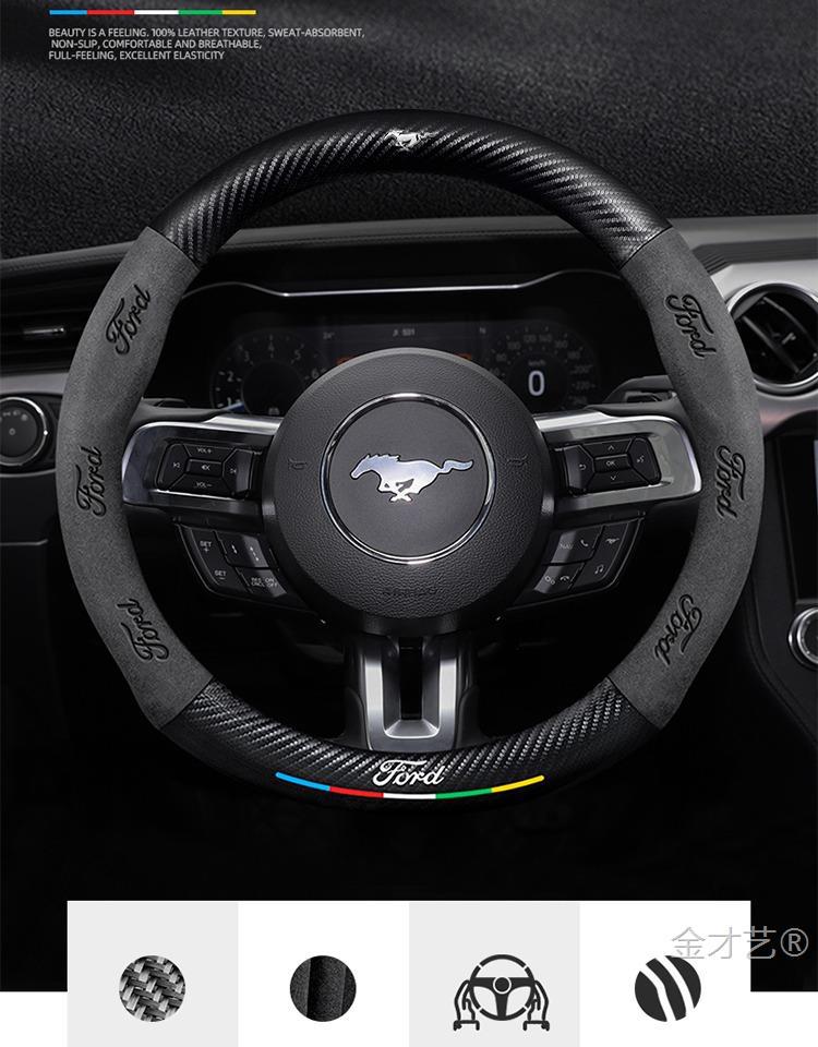 머스탱 스티어링 휠 커버 12-24 모델 올 시즌 가죽 스웨이드 탄소 섬유 자동차 핸들 커버스토어 가기