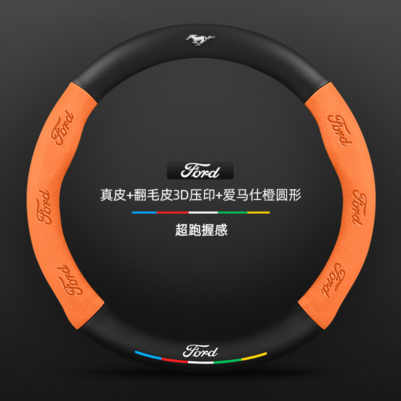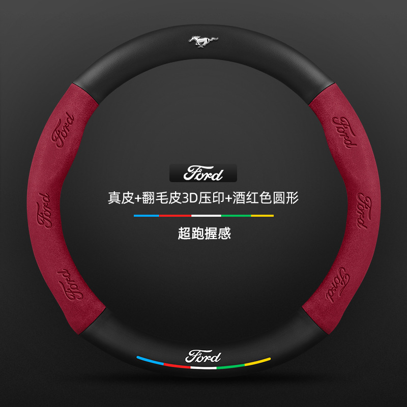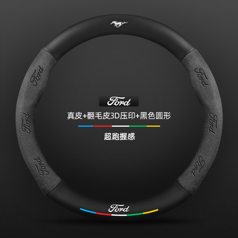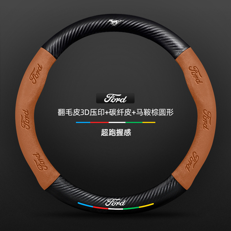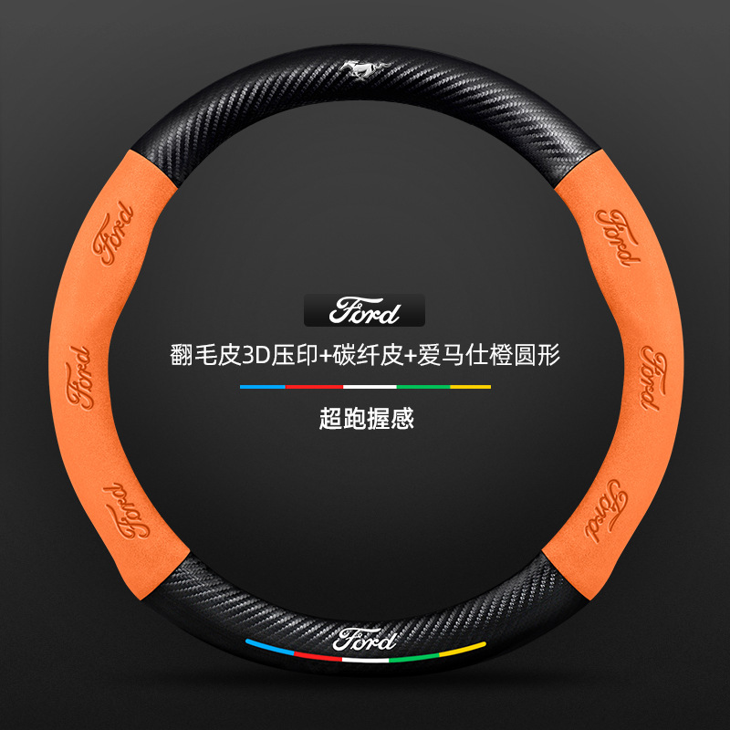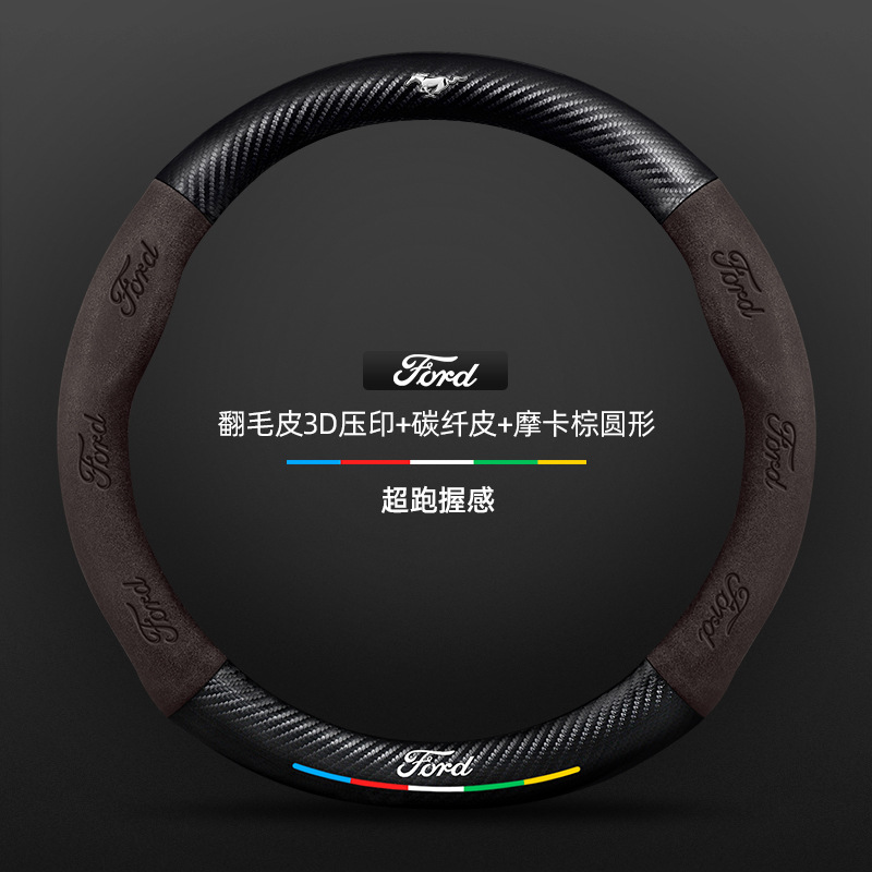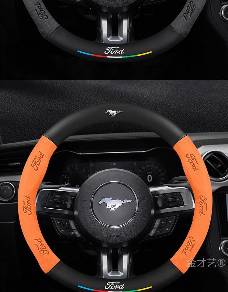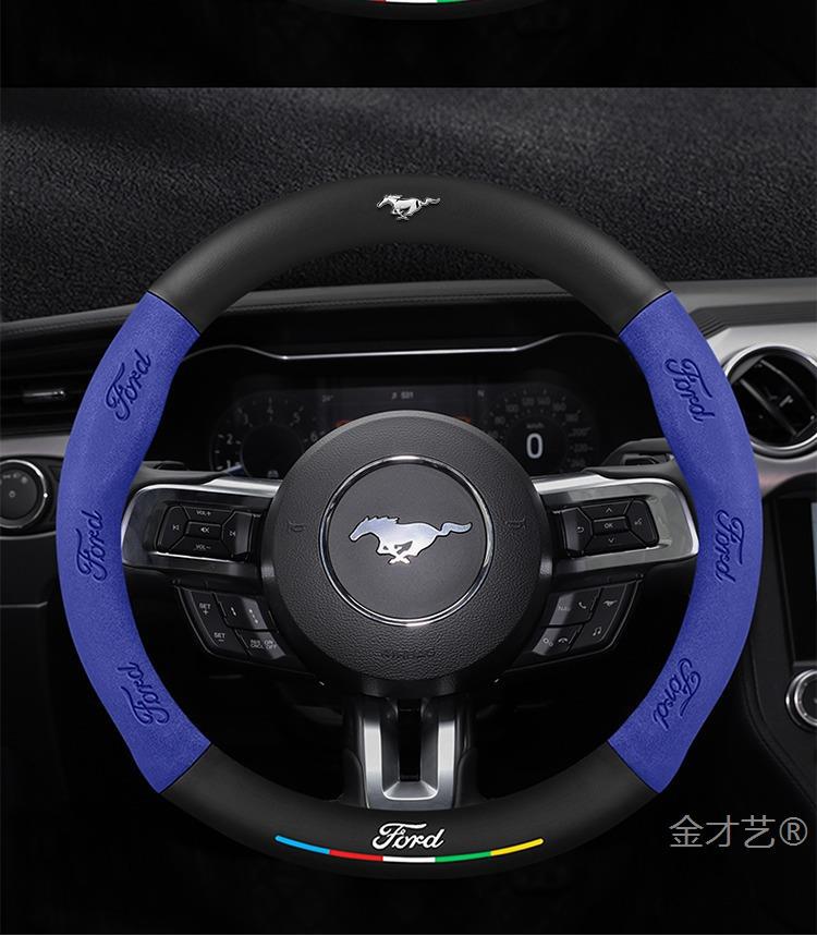 머스탱 스티어링 휠 커버 12-24 모델 올 시즌 가죽 스웨이드 탄소 섬유 자동차 핸들 커버스토어 가기