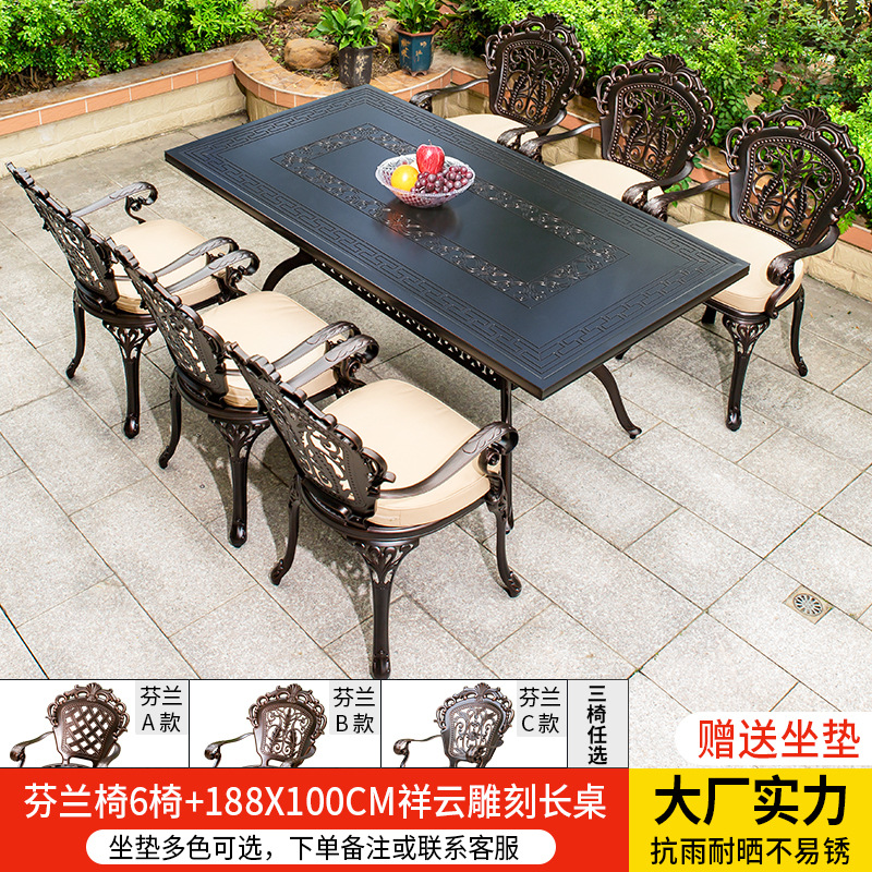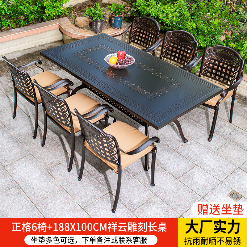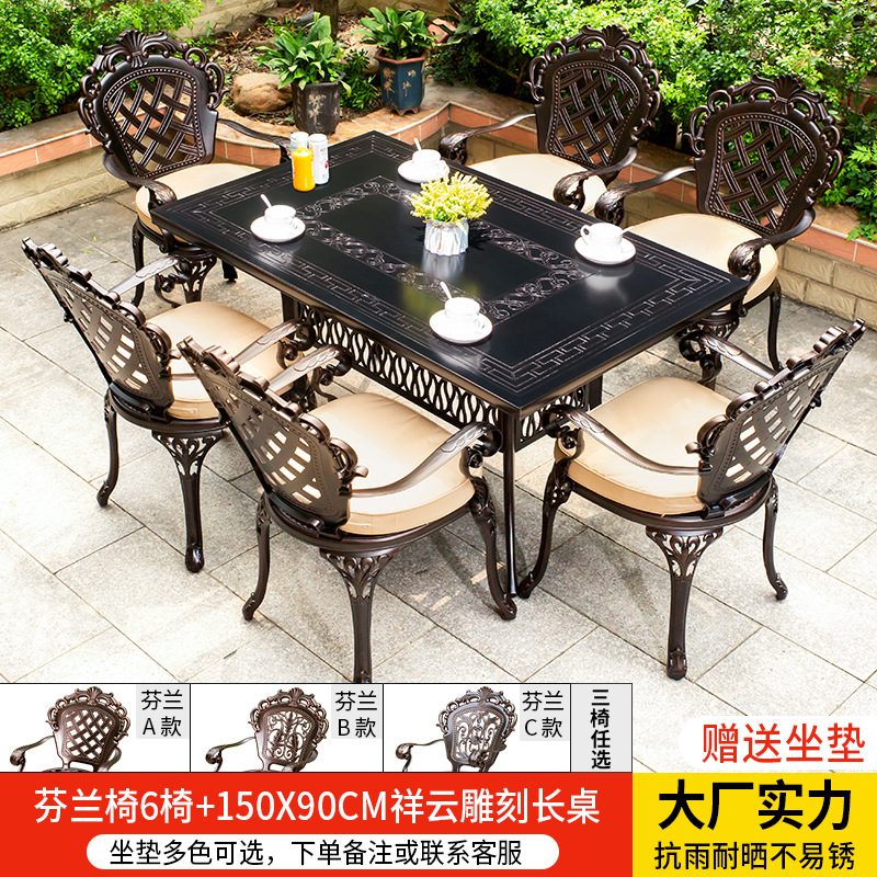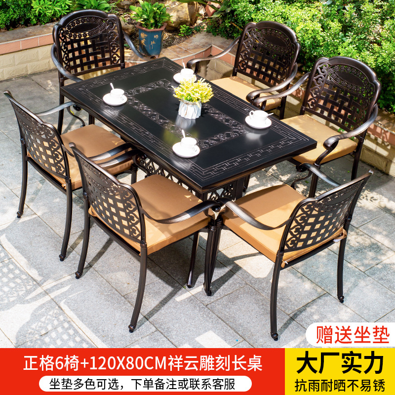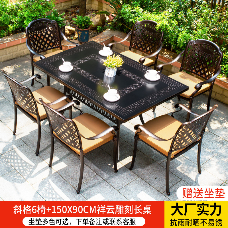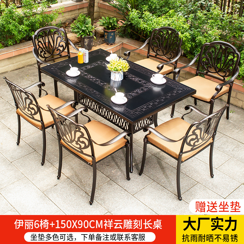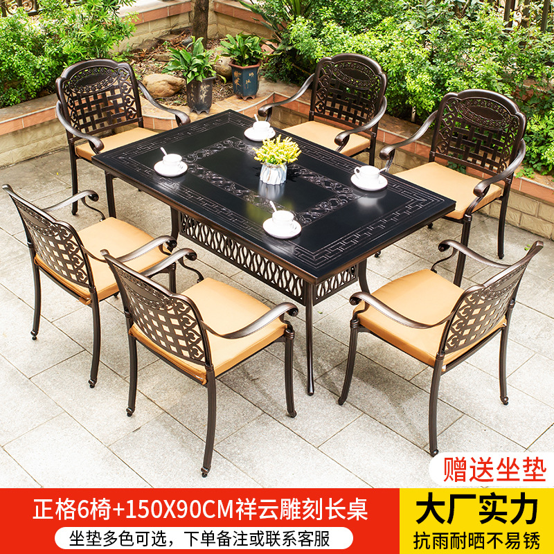 • 경사형 의자 6개 + 150*90CM Xiangyun 조각 긴 테이블