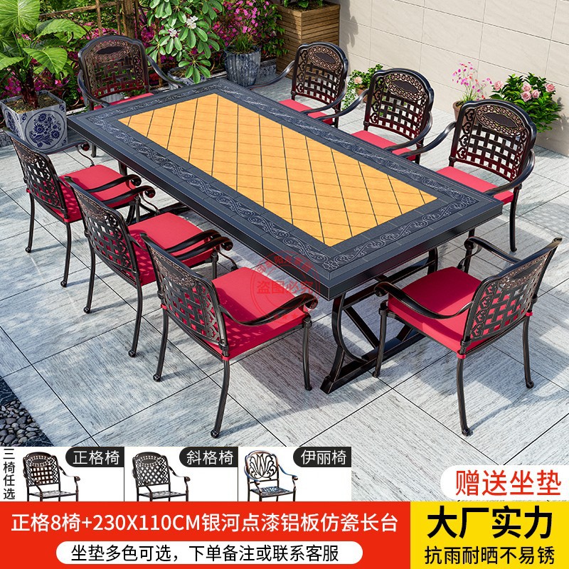 • Zhengge 의자 8개 + 230X110CM 갤럭시 도트 페인트 알루미늄 플레이트 모조 도자기 긴 테이블