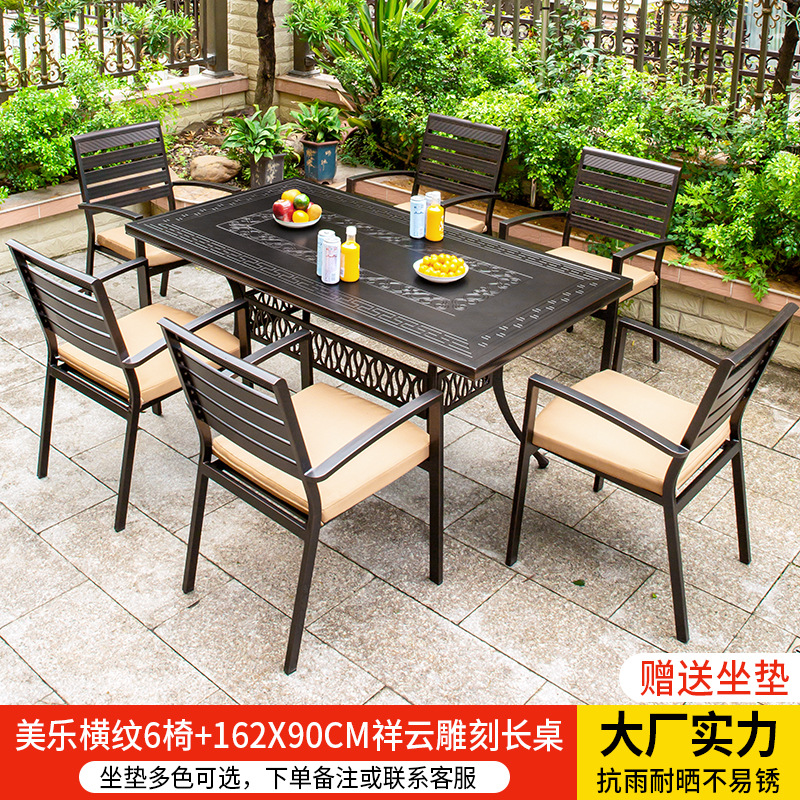 • 멜로 가로 줄무늬 의자 6개 + 162*90CM Xiangyun 조각 긴 테이블.