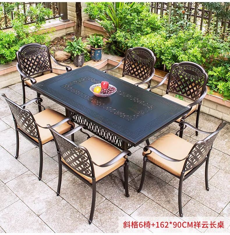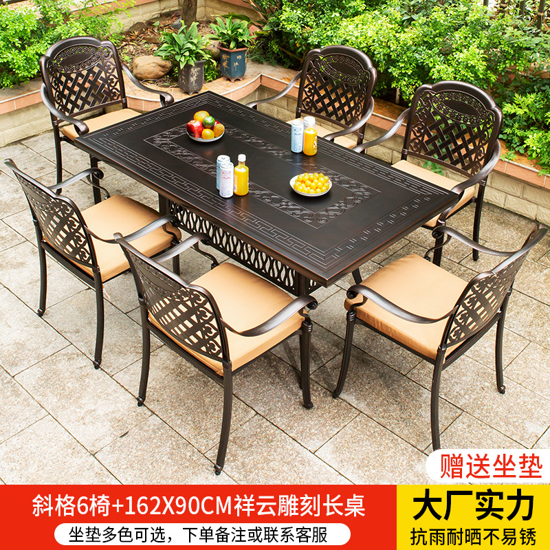• 경사진 의자 6개 + 162*90CM Xiangyun 조각 긴 테이블