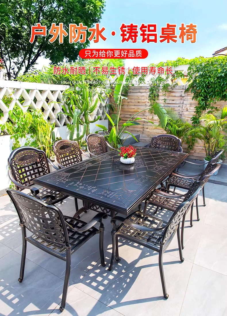 야외 안뜰 테이블과 의자, 주조 알루미늄 가구, 3~5피스 식탁과 의자 조합, 레저 안뜰 빌라 카페 테이블과 의자스토어 가기