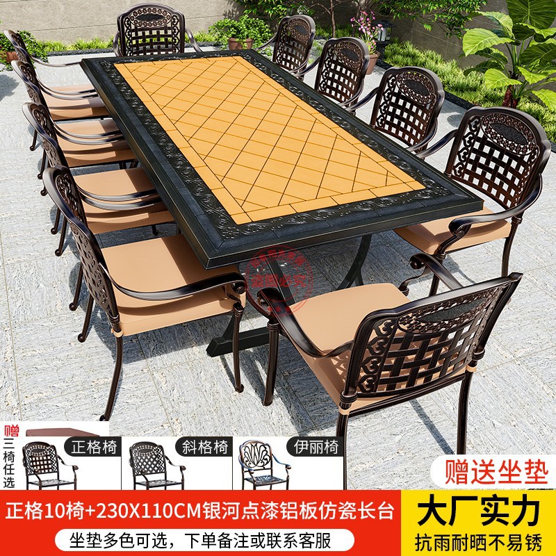 • Zhengge 의자 10개 + 230X110CM 갤럭시 도트 페인트 알루미늄 플레이트 모조 도자기 긴 테이블