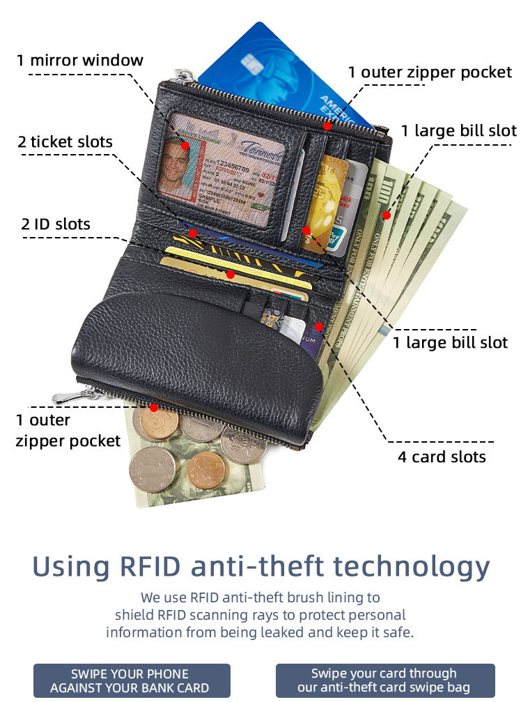 국경 간 지갑 헤드 레이어 소 가죽 RFID2025 년 새 스타일 지갑 패션 여성의 자연 드롭 편리한 대용량스토어 가기