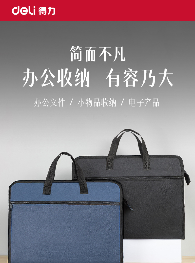 델리 63753/63754 수납용 사무용 가방 정리용 지퍼 파일 가방 간단한 휴대용 인쇄 가능한 로고