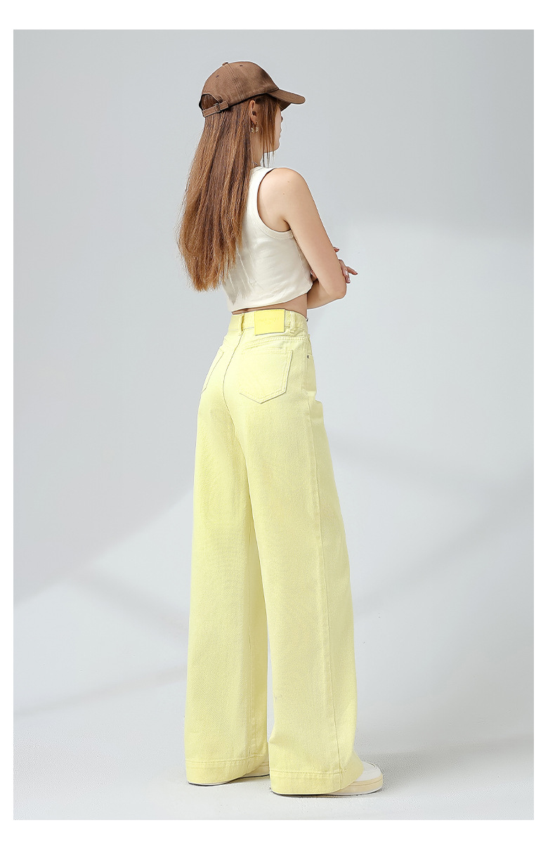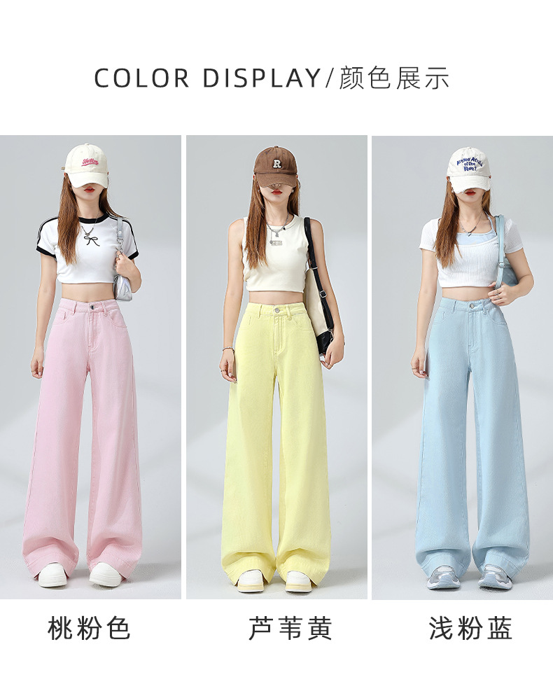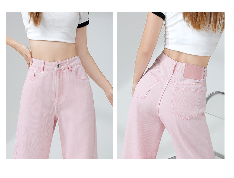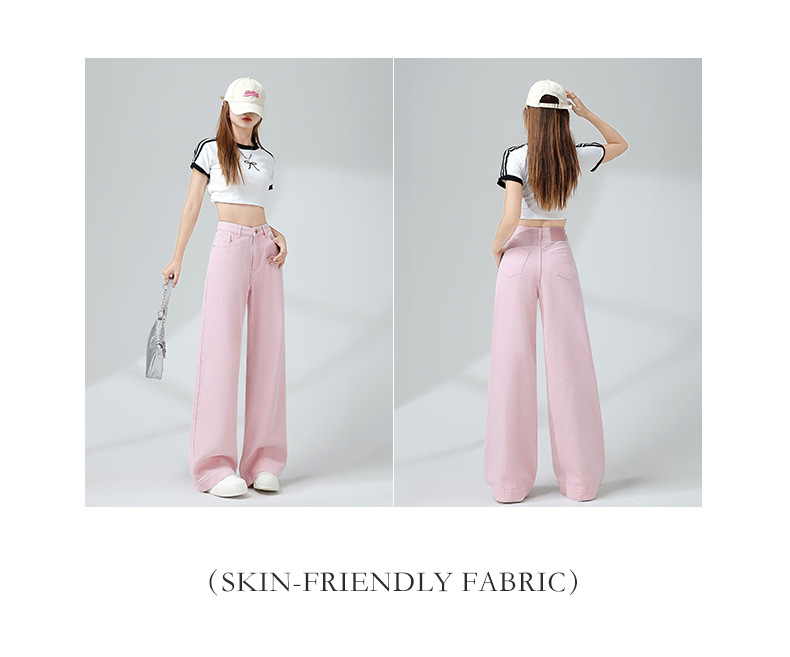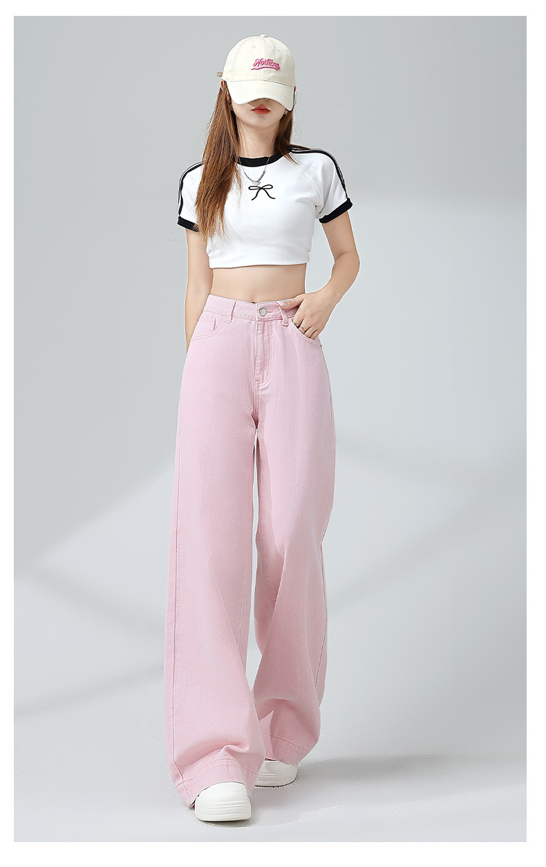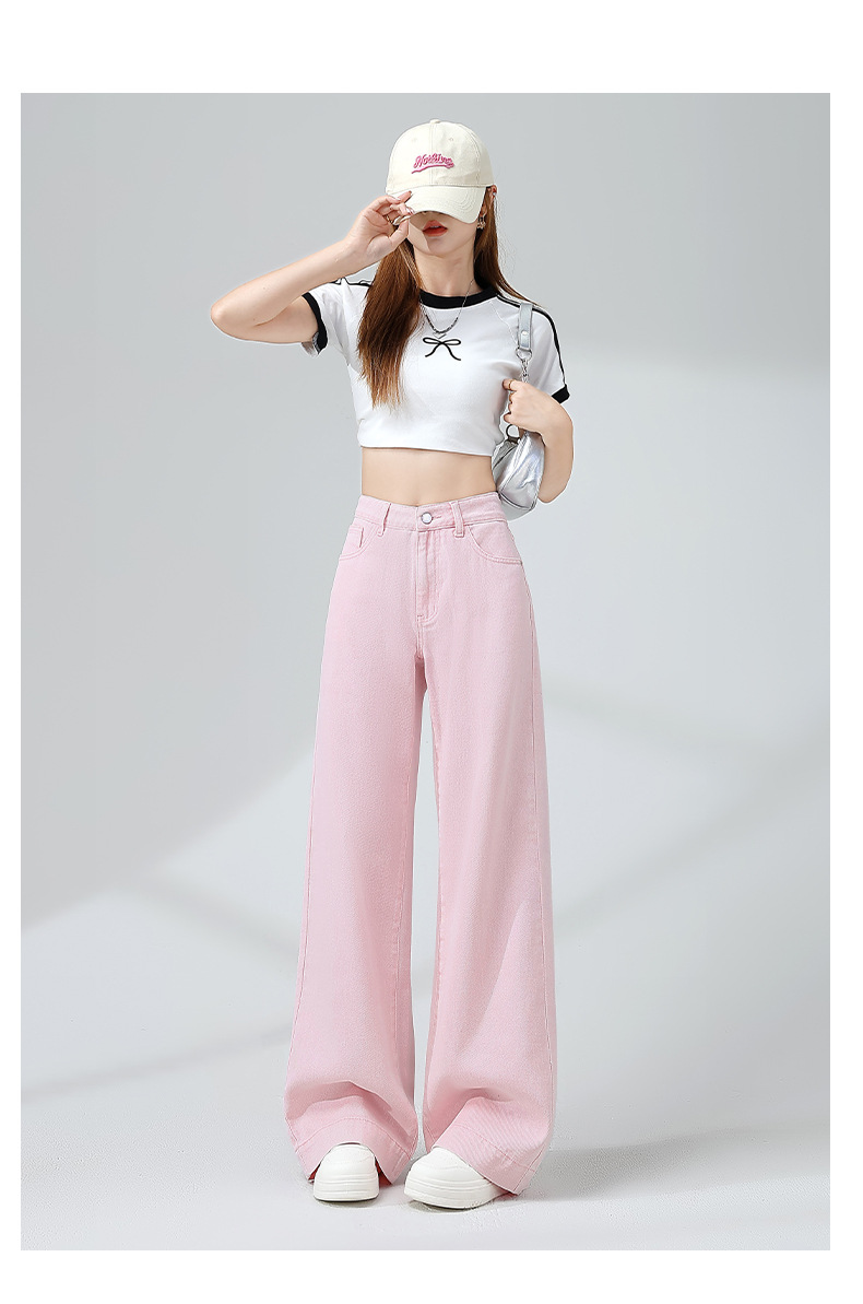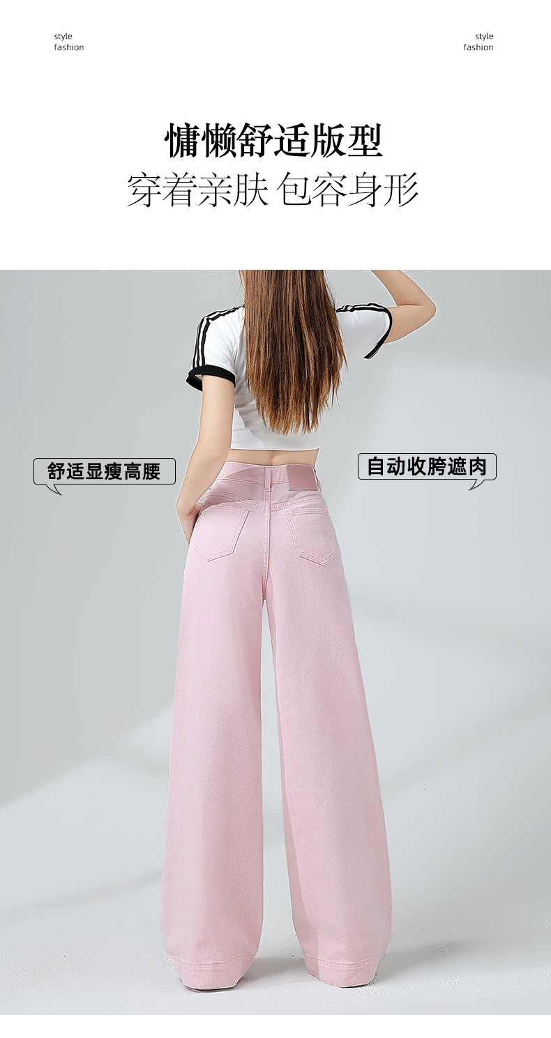 핑크 하이 웨이스트 청바지 여성 2025 년 여름 새로운 루즈 더미 디자인 센스 좁은 와이드 레그 바지스토어 가기
