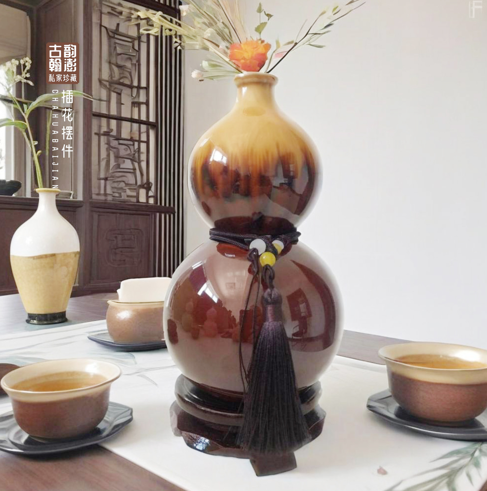 세라믹 조롱박 엉덩이 플라스크 골동품 지하실 화이트 쌀 와인 자체 양조 빈 병 높은 색상 가치 창조적 인 꽃꽂이 장식품 도매스토어 가기