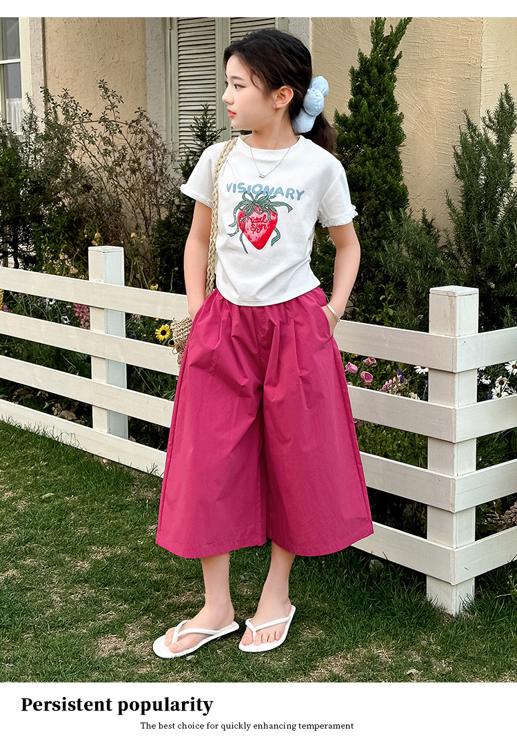 큰 어린이를 위한 여아 여름 반팔 양복, 패셔너블한 여아 여름 레이스 티셔츠, 7부 바지 투피스 세트