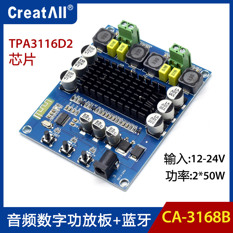 CA-3168 Bluetooth 디지털 전력 증폭기 보드 듀얼 채널 2*50W 고출력 스피커 모듈 TPA3116D2