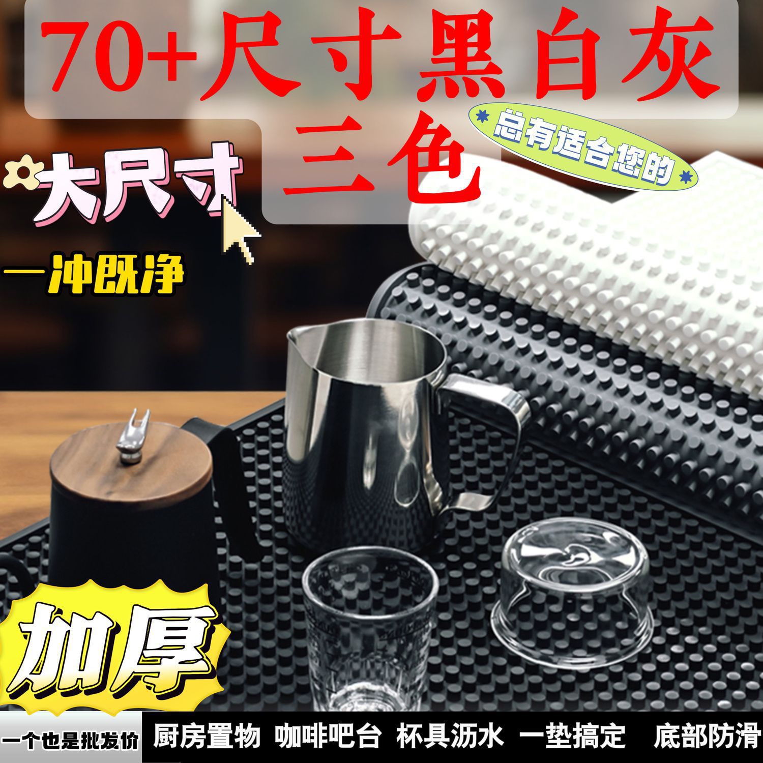 블랙 화이트 그레이 드레인 매트 커피 바 매트 비 슬립 코스터 주방 단열 가정용 우유 차 가게 큰 과립