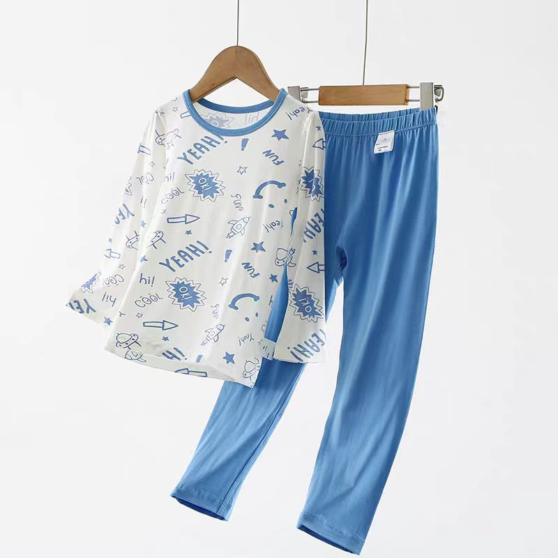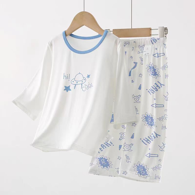 남아용 잠옷, 모달 아동복 세트, 여름용 얇은 중대형 아동용 아이스 실크 7부소매 에어컨 의류스토어 가기