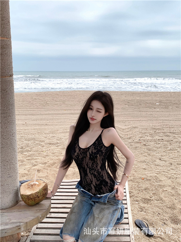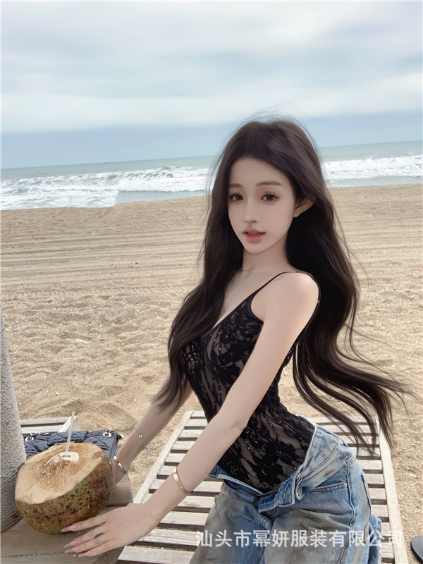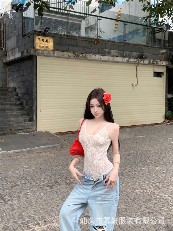 2256 핫걸 스타일 캐미솔 여성 점프수트 슬림 레이스 이너 디자인 섹시한 백리스 탑 아우터스토어 가기
