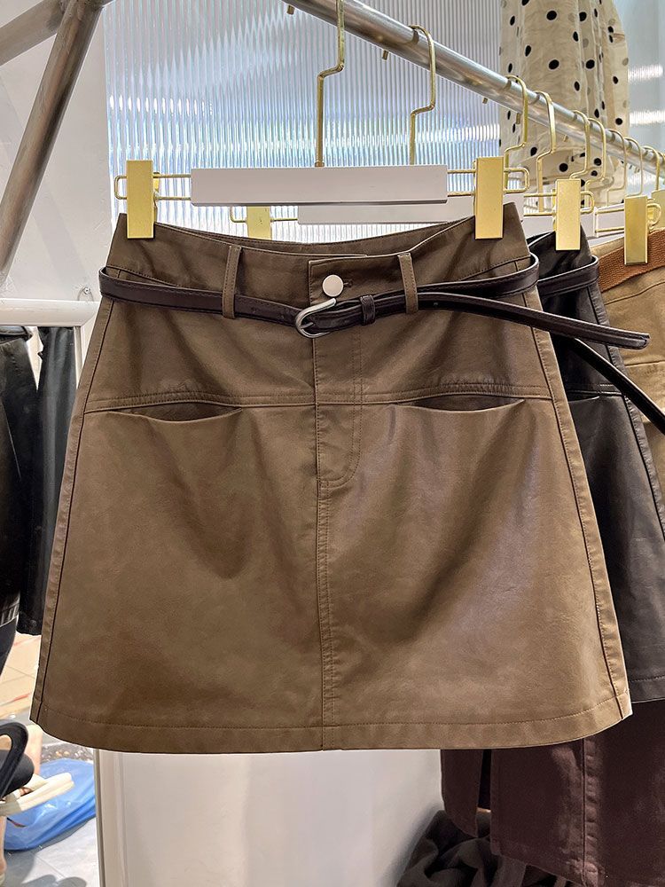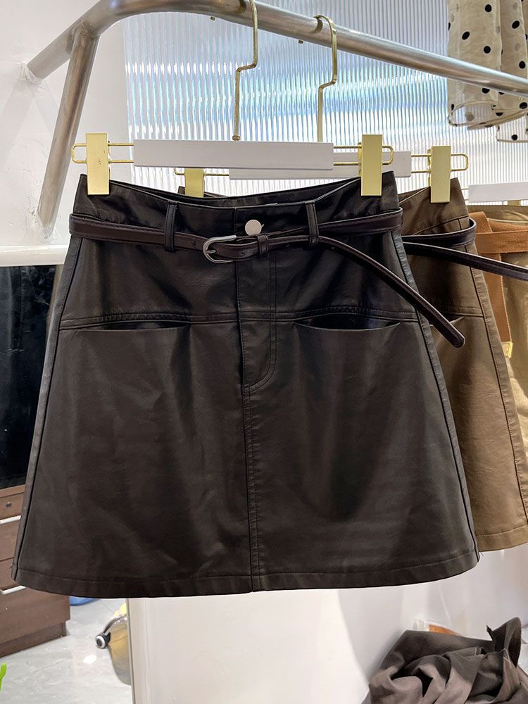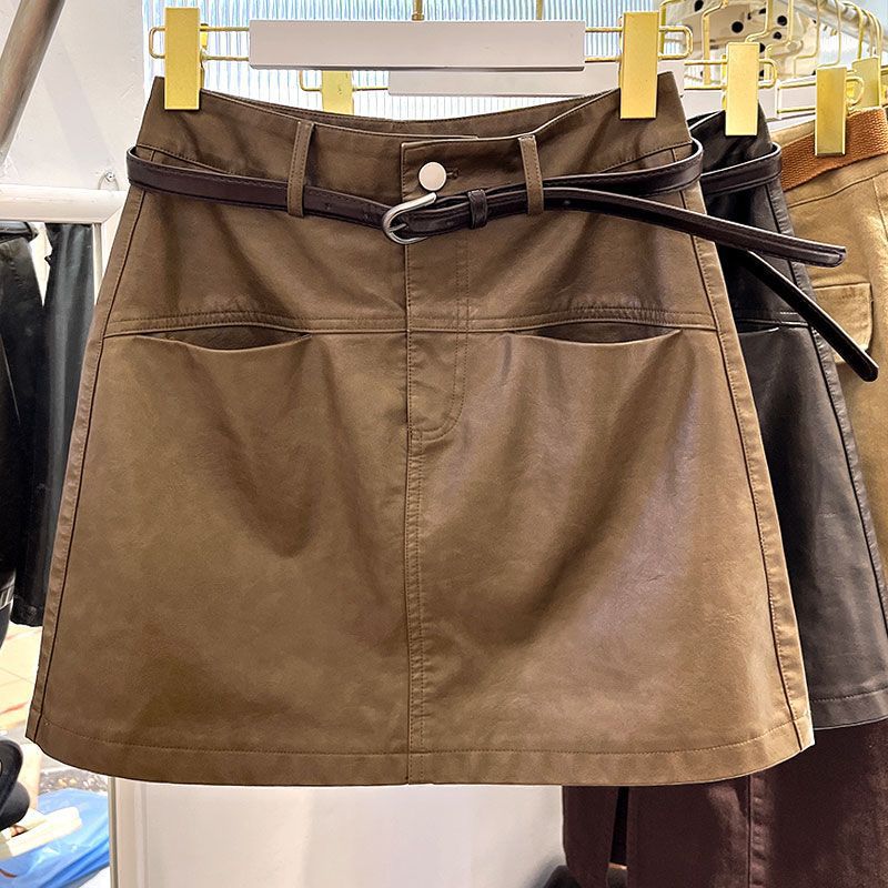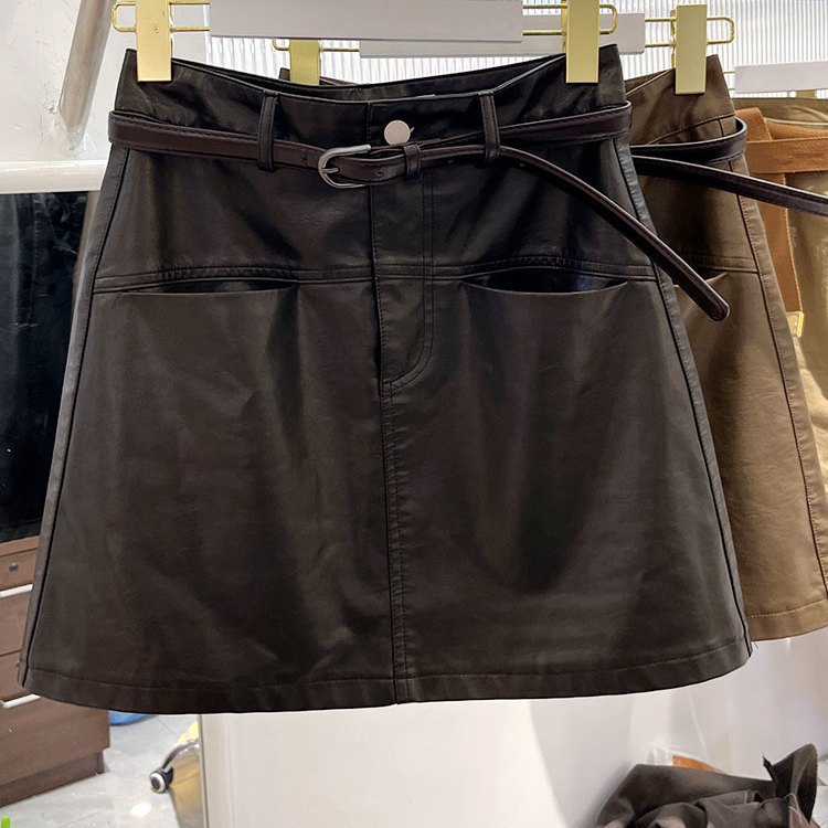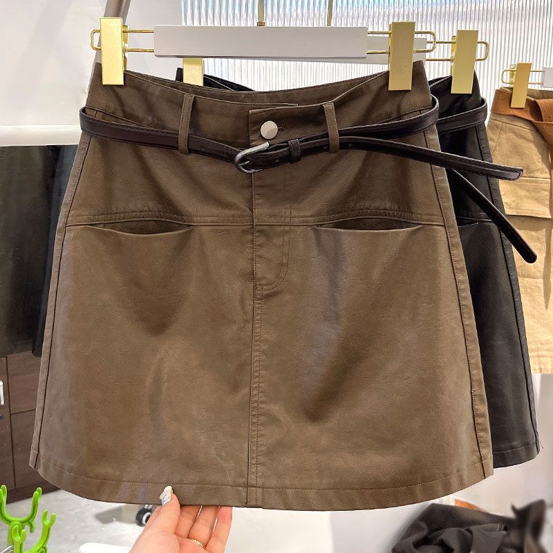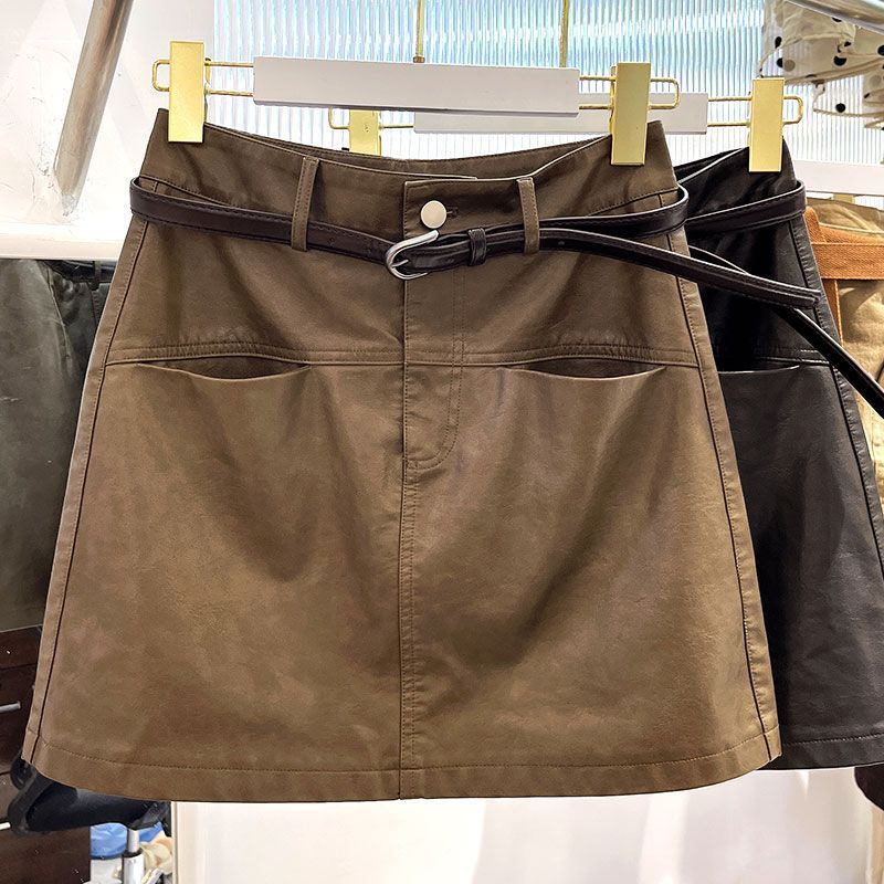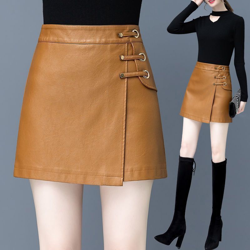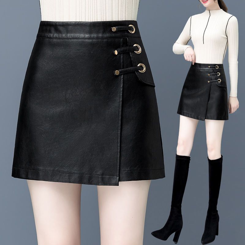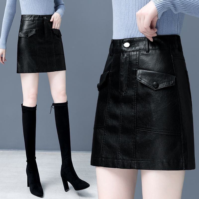 여성을위한 PU 가죽 스커트 2024 가을, 겨울 새로운 하이 웨이스트 a 라인 스커트 섹시한 뜨거운 소녀 블랙 힙 스커트스토어 가기