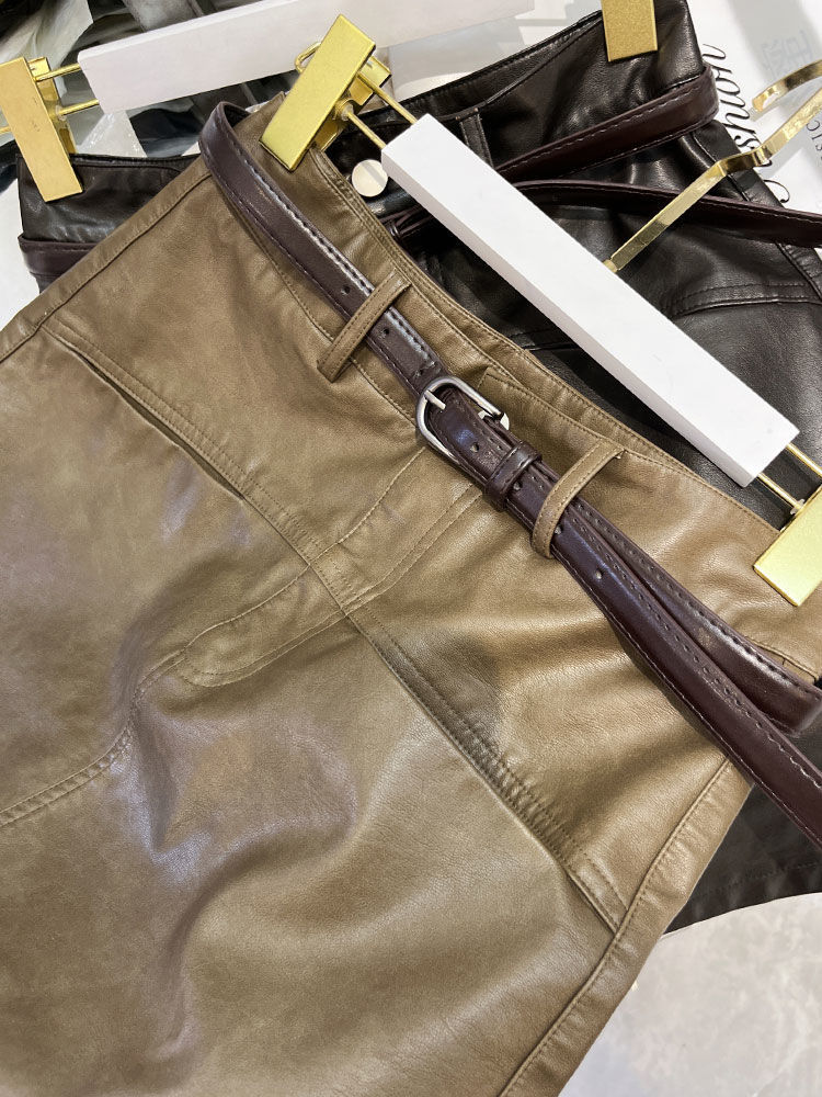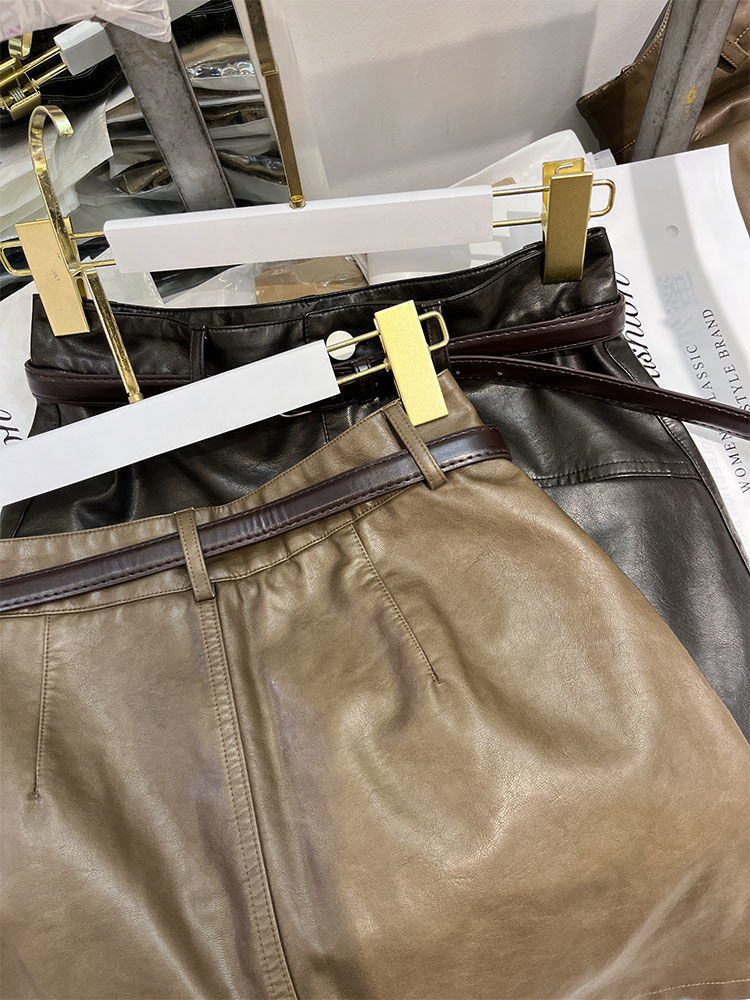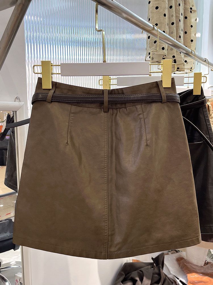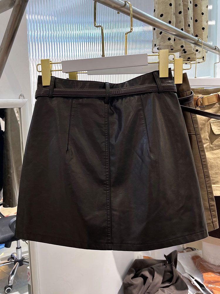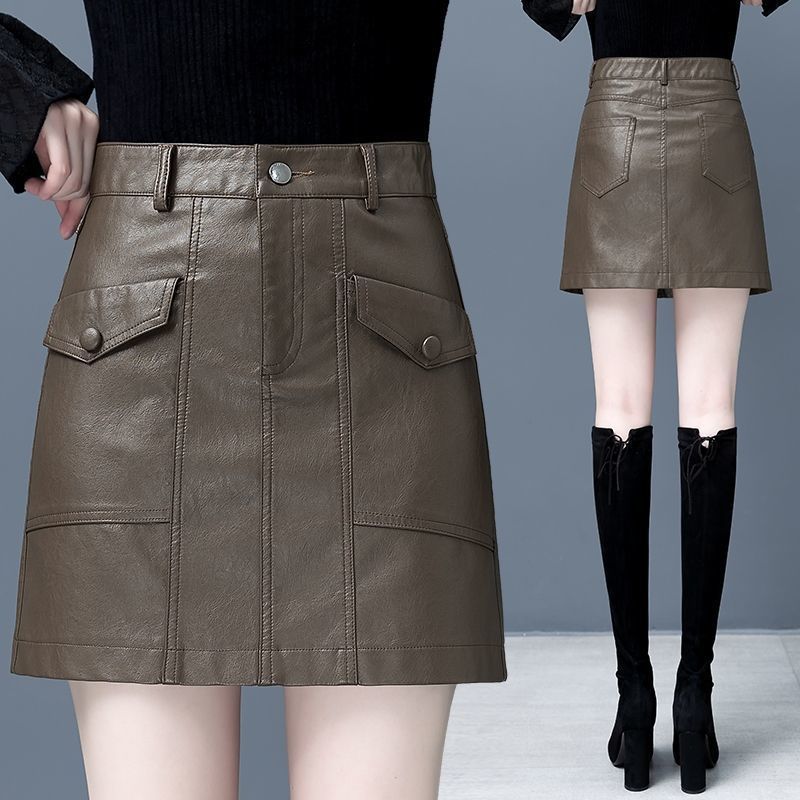 여성을위한 PU 가죽 스커트 2024 가을, 겨울 새로운 하이 웨이스트 a 라인 스커트 섹시한 뜨거운 소녀 블랙 힙 스커트