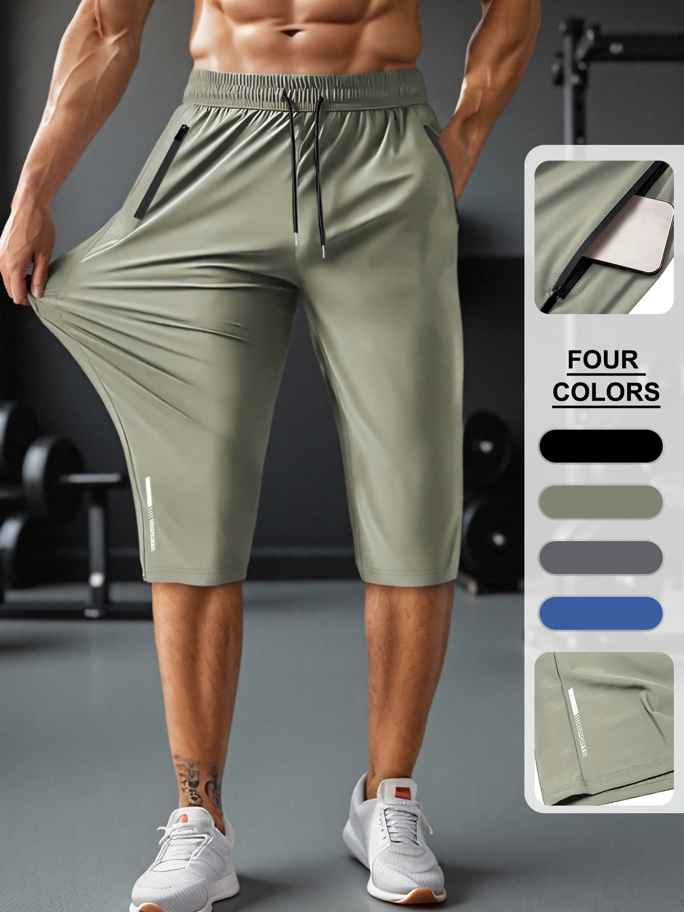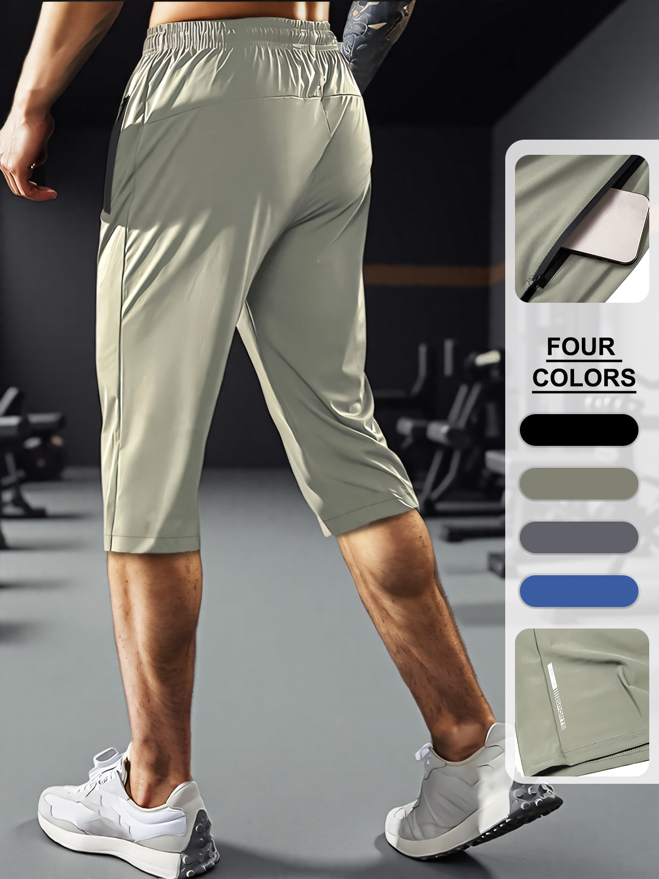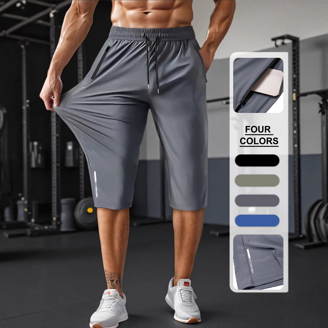 국경 간 아이스 실크 캐주얼 바지 남자 여름 얇은 스트레치 빠른 건조 카프리 바지 남자 플러스 사이즈 느슨한 스포츠 바지