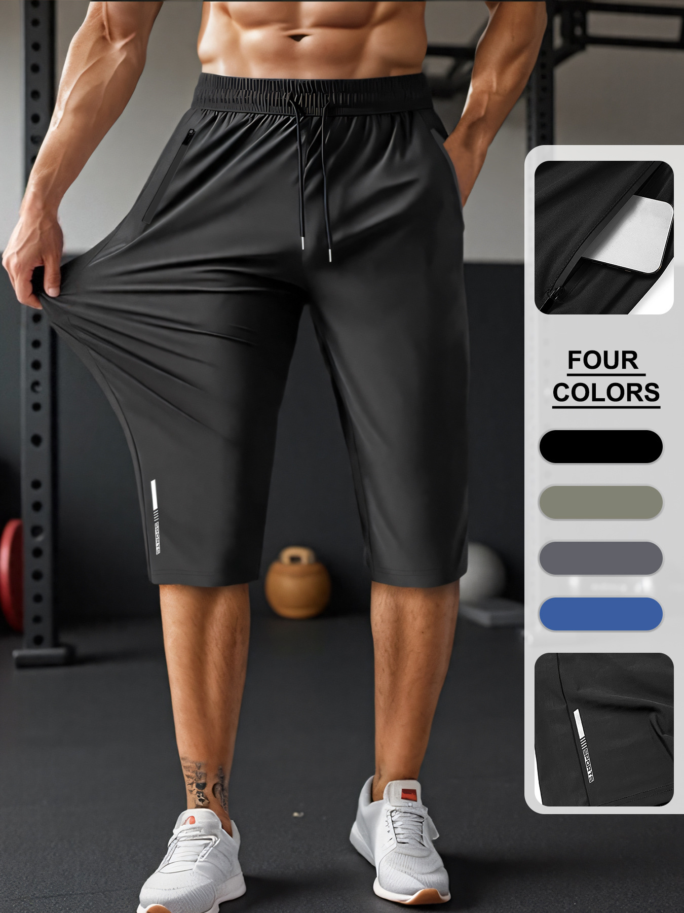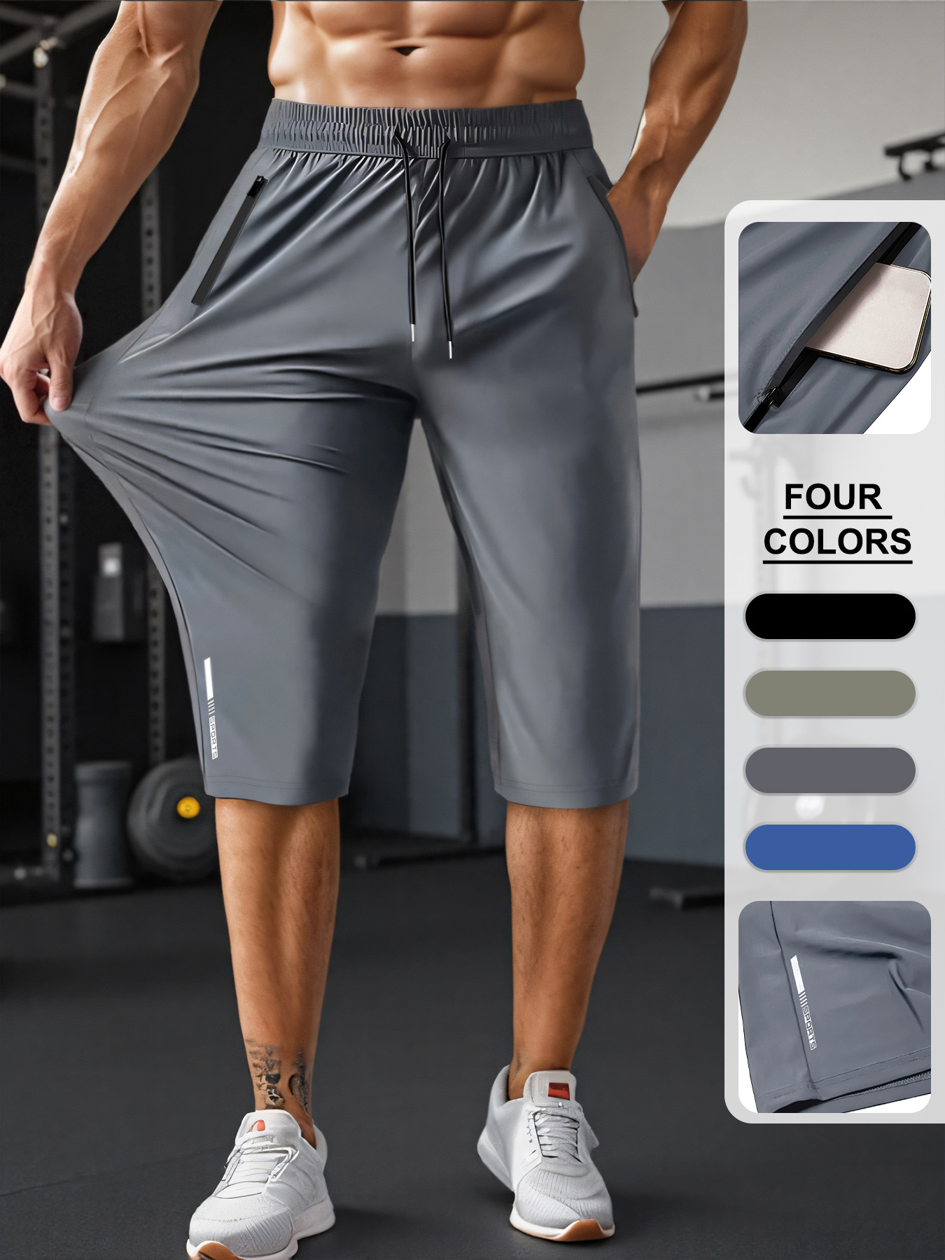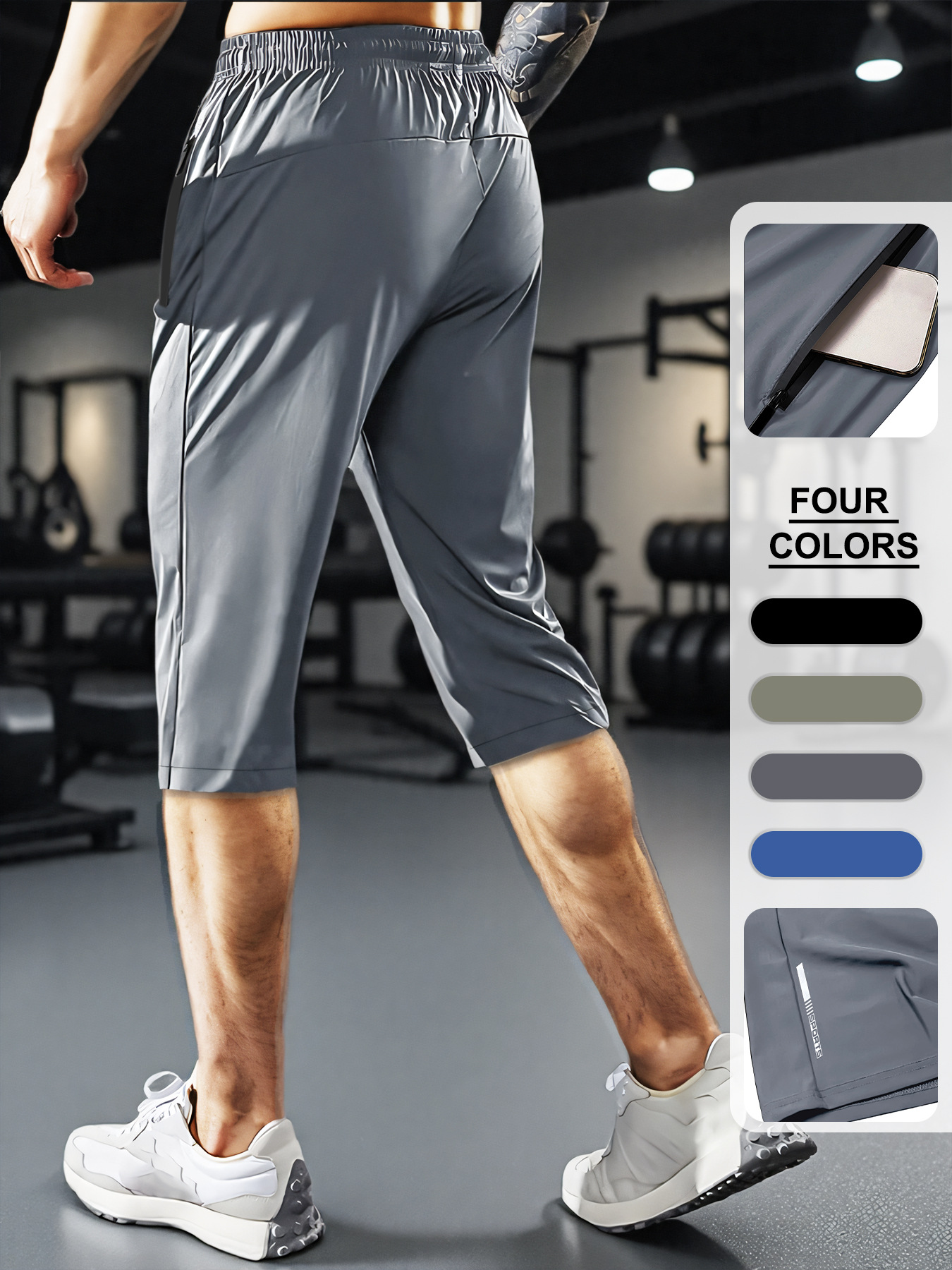 국경 간 아이스 실크 캐주얼 바지 남자 여름 얇은 스트레치 빠른 건조 카프리 바지 남자 플러스 사이즈 느슨한 스포츠 바지