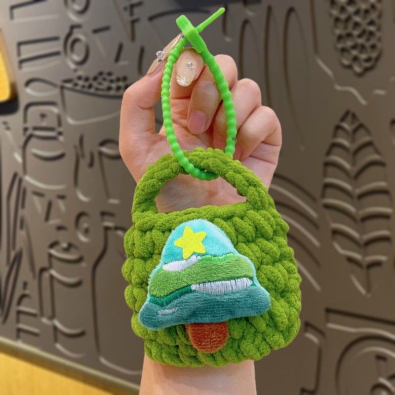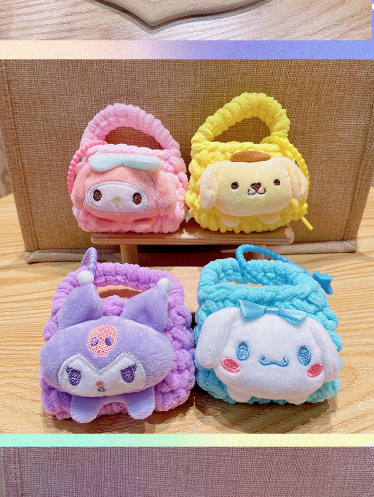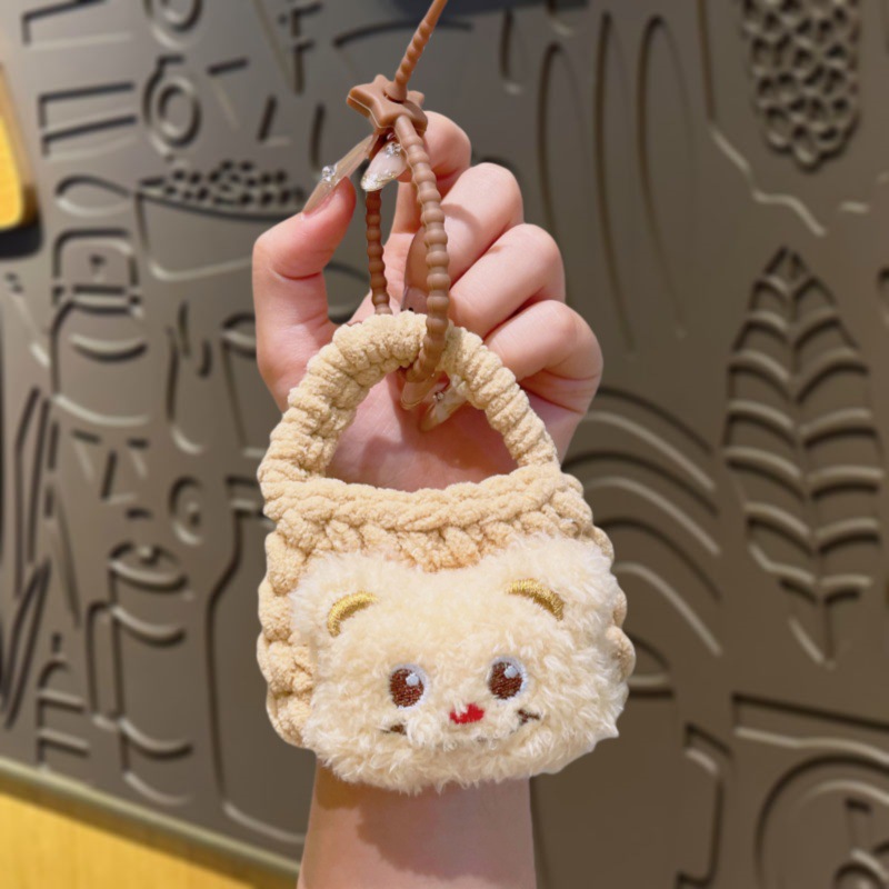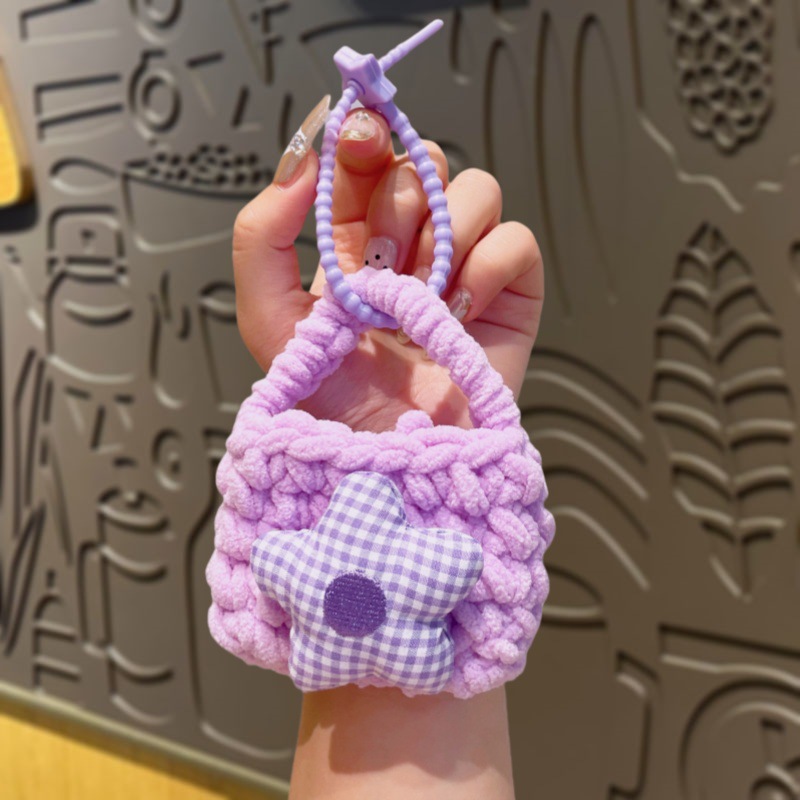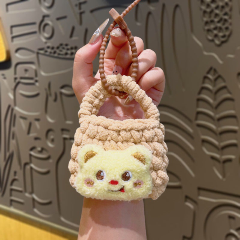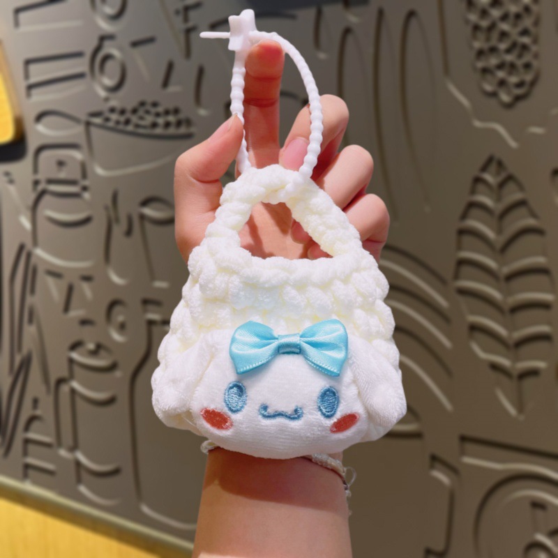 만화 Sanrio 손으로 짠 블루투스 헤드폰 가방, 짠 동전 지갑, 귀여운 가방 참, 열쇠고리 펜던트스토어 가기