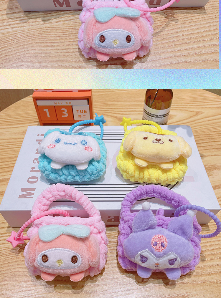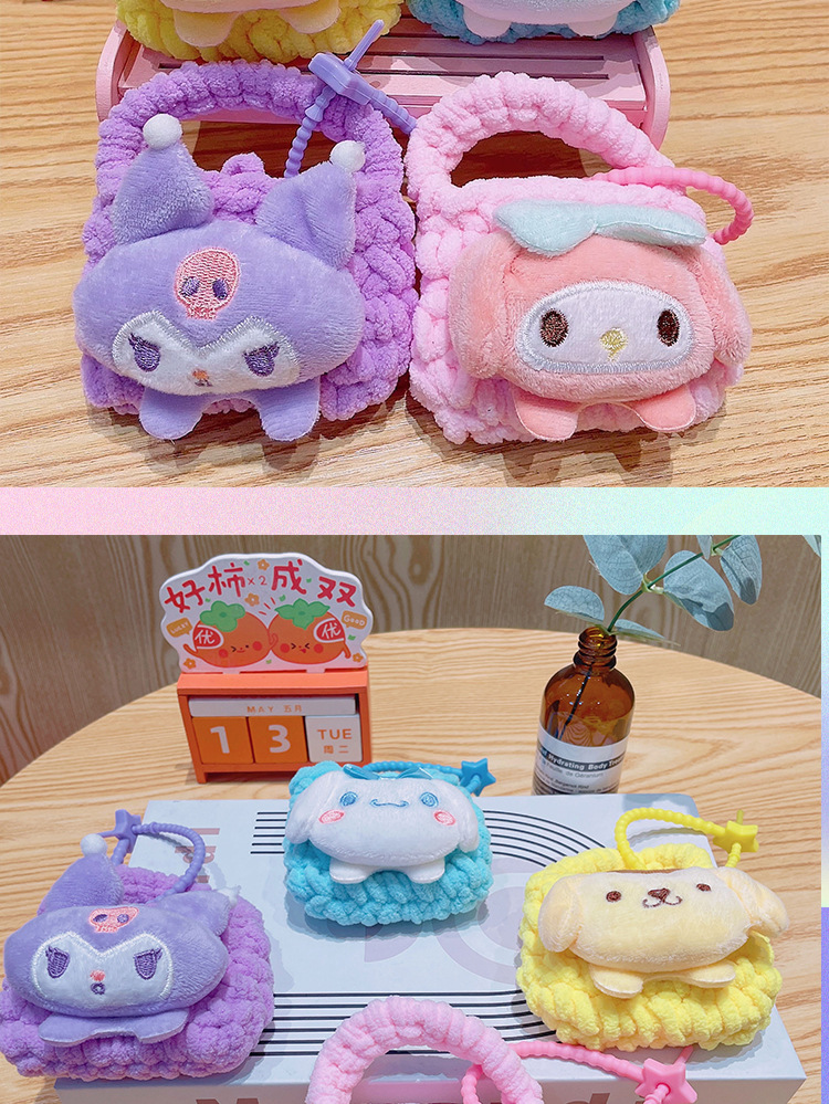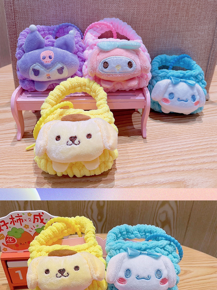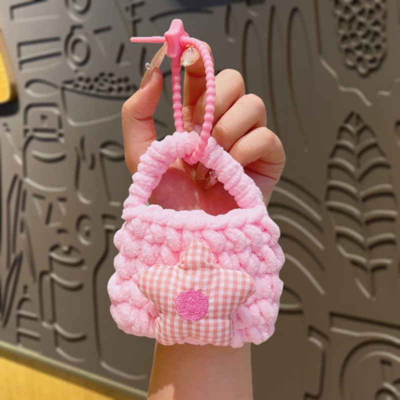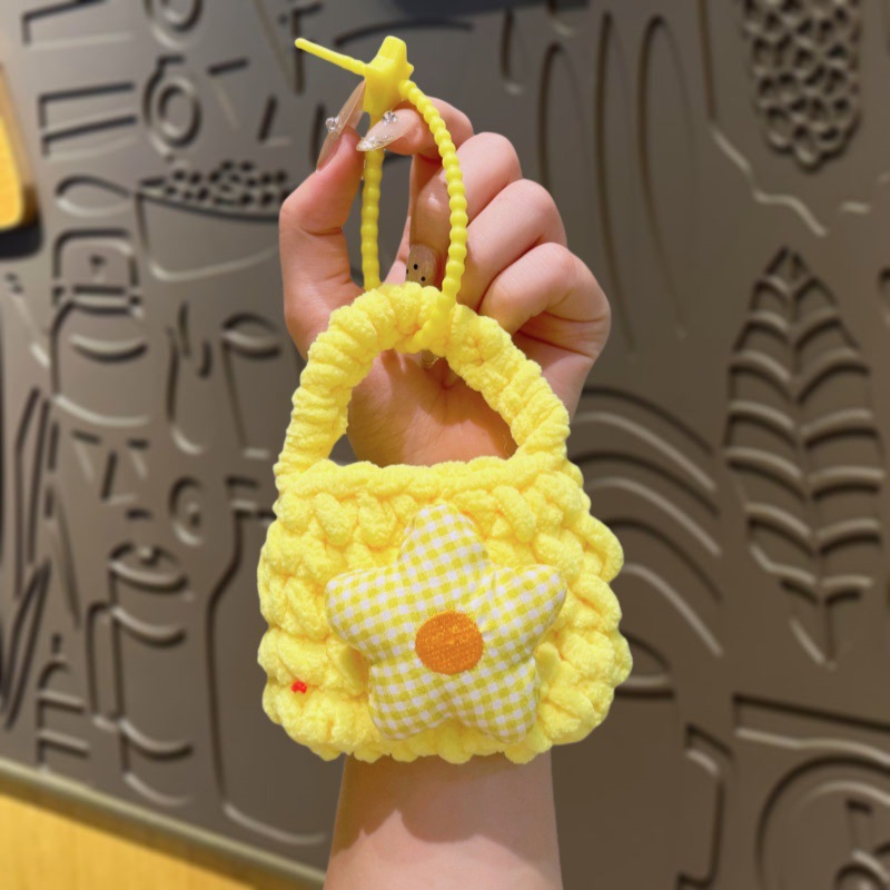 만화 Sanrio 손으로 짠 블루투스 헤드폰 가방, 짠 동전 지갑, 귀여운 가방 참, 열쇠고리 펜던트스토어 가기