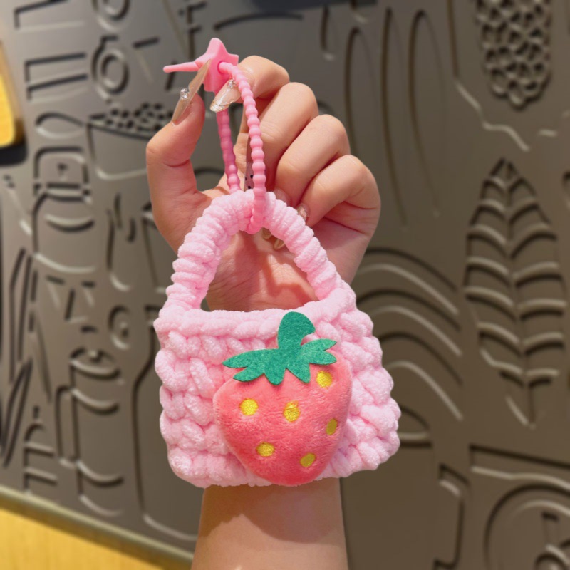 • 과일 니트 동전 지갑 - 딸기