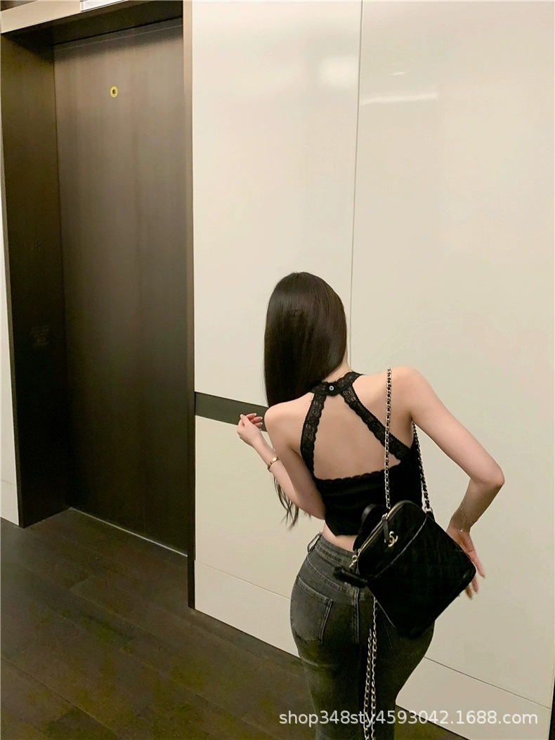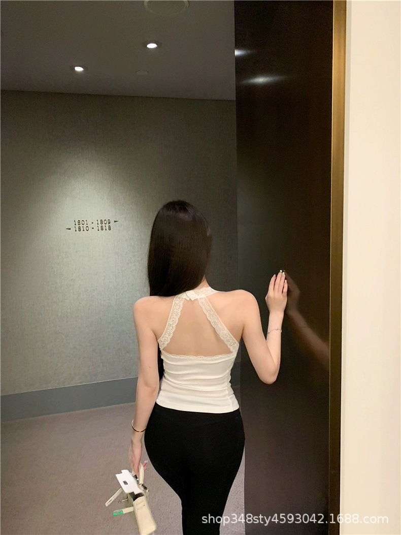 L5309를 한국어로 번역하세요 # 여성용 태국 레이스 홀터넥 캐미솔, 여름 달콤하고 섹시한 원 숄더 튜브 탑스토어 가기
