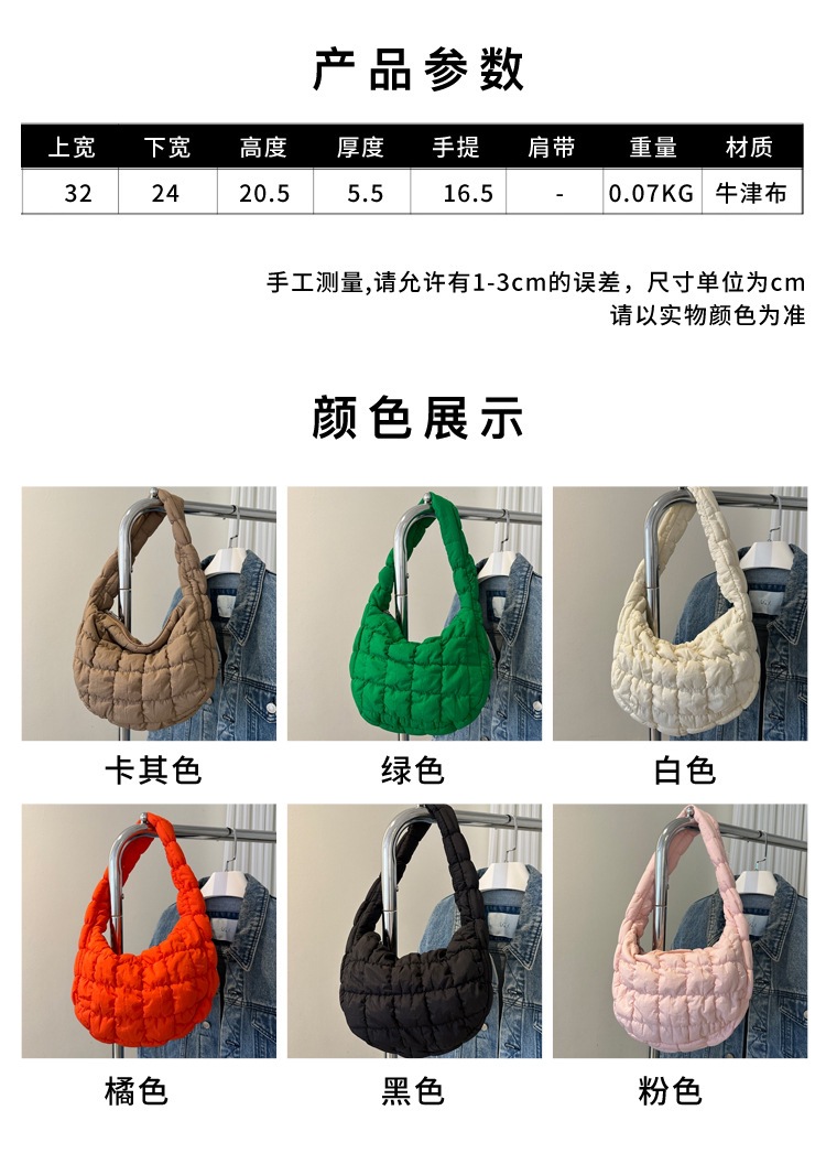 패션 간단한 겨드랑이 대용량 짠 가방 여성 퀼트 경량 핸드백 다운 코튼 패딩 숄더 백