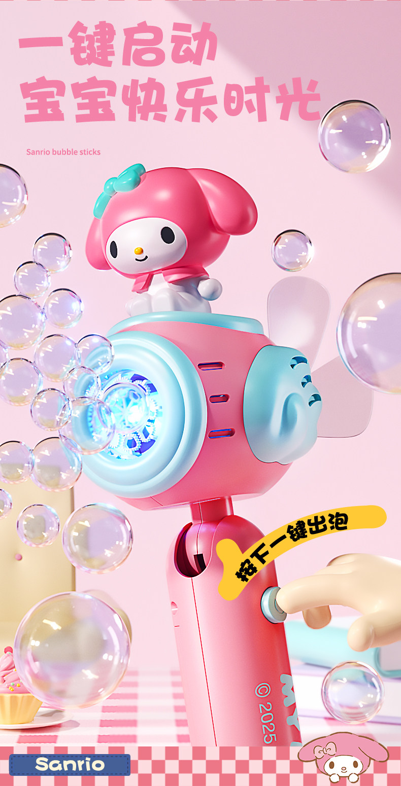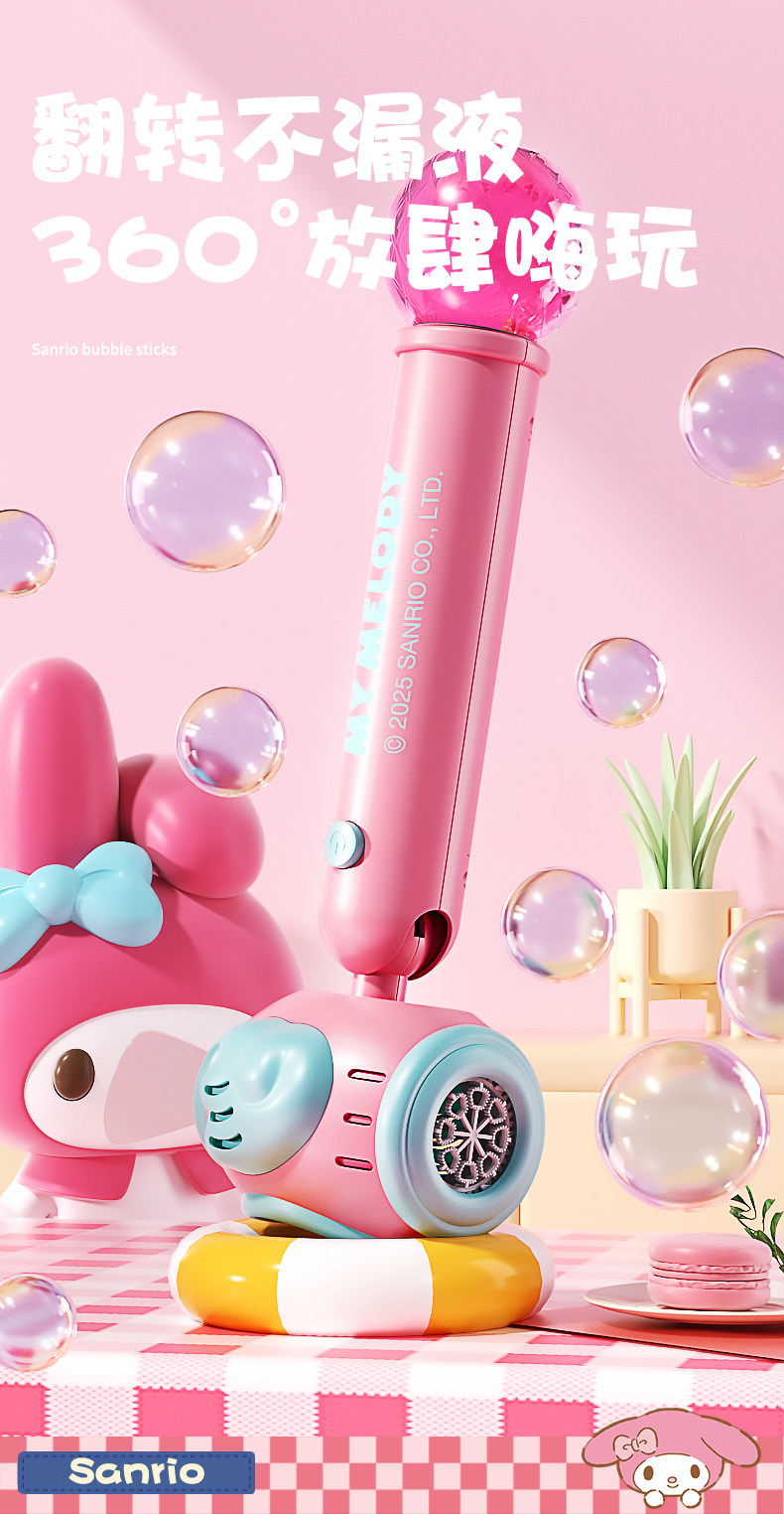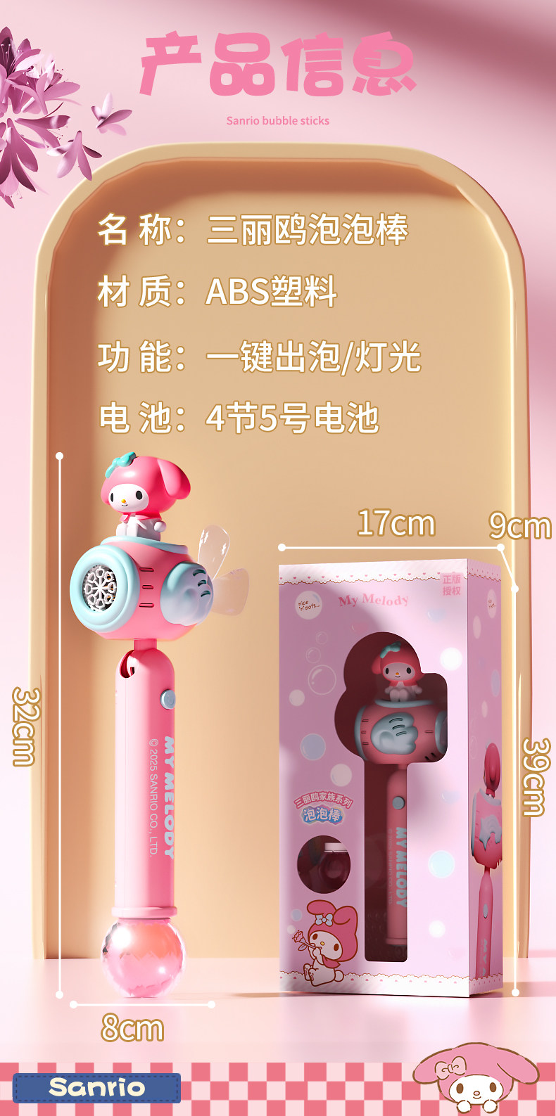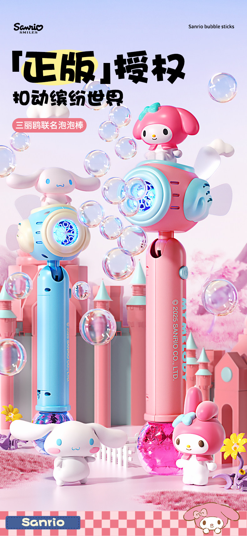 정품 산리오 거품 기계 어린이 휴대용 전기 자동 쿨 루미 큰 귀 개 거품 스틱 소녀 장난감스토어 가기