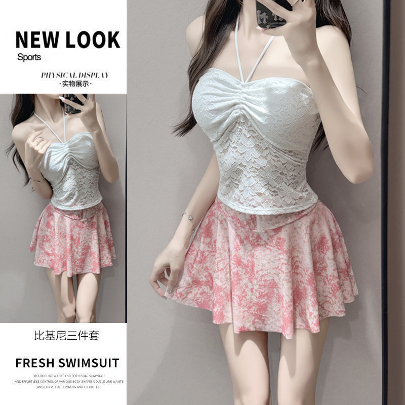 도파민 소녀 섬 스위트 수영복 여성용 3 피스 해변 휴가 스트랩리스 슬링 달콤한 매운 수영복