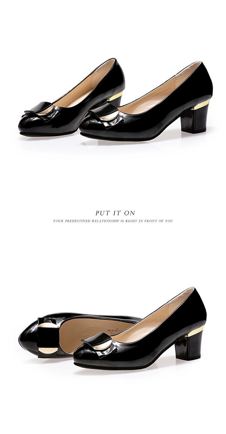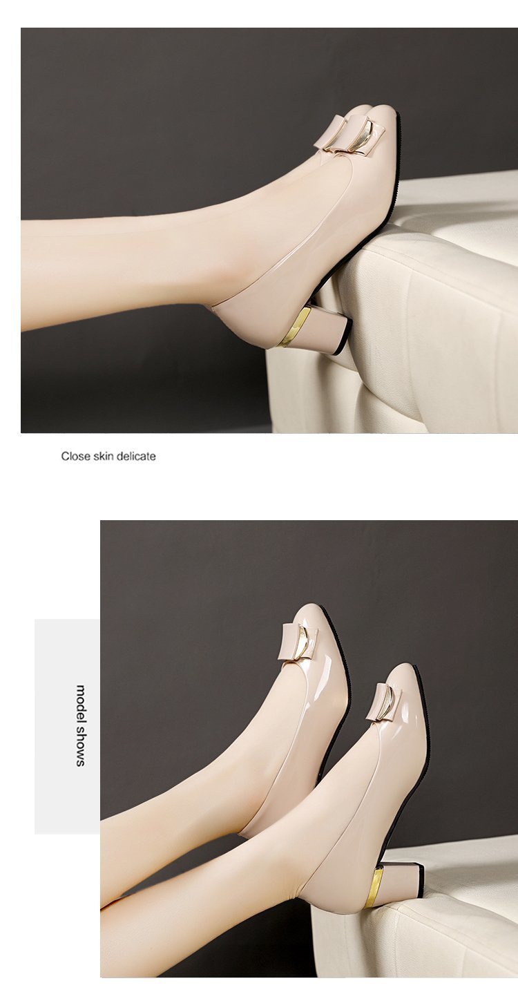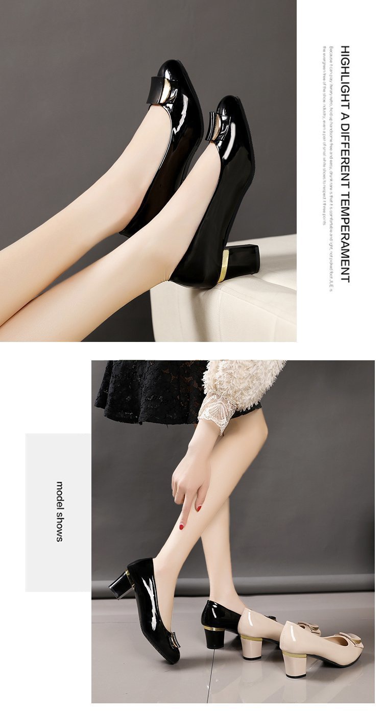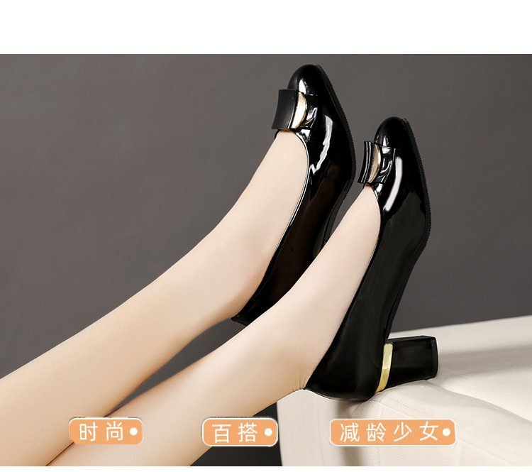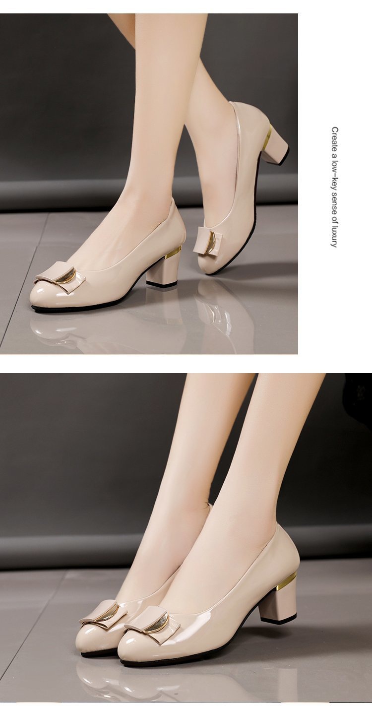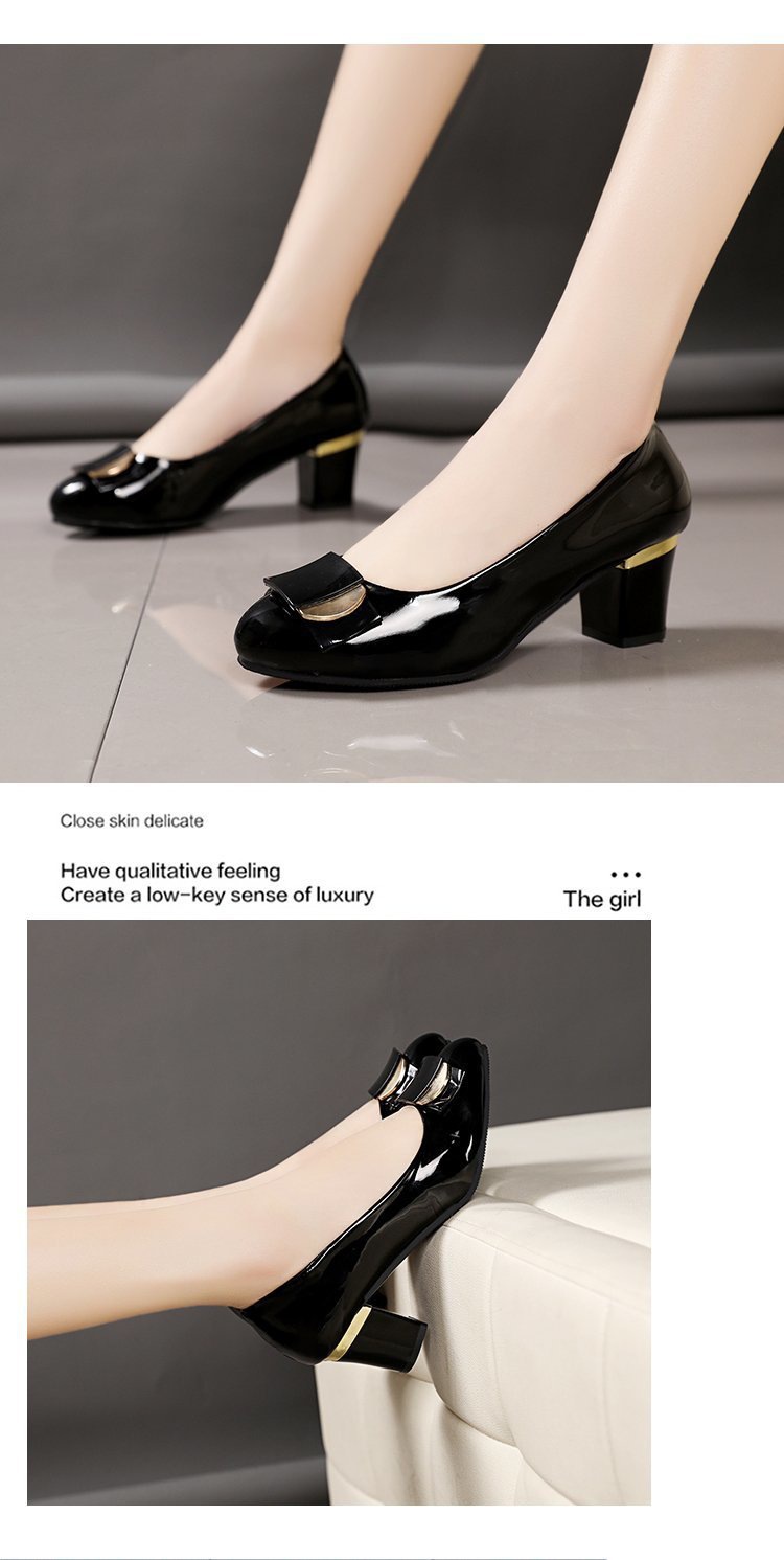 여성 가죽 신발 2025 새로운 두꺼운 굽 여성 싱글 신발 다목적 슬립 온 미드 힐 라인 석 전문 작업 신발 사계절 신발스토어 가기