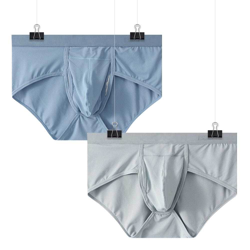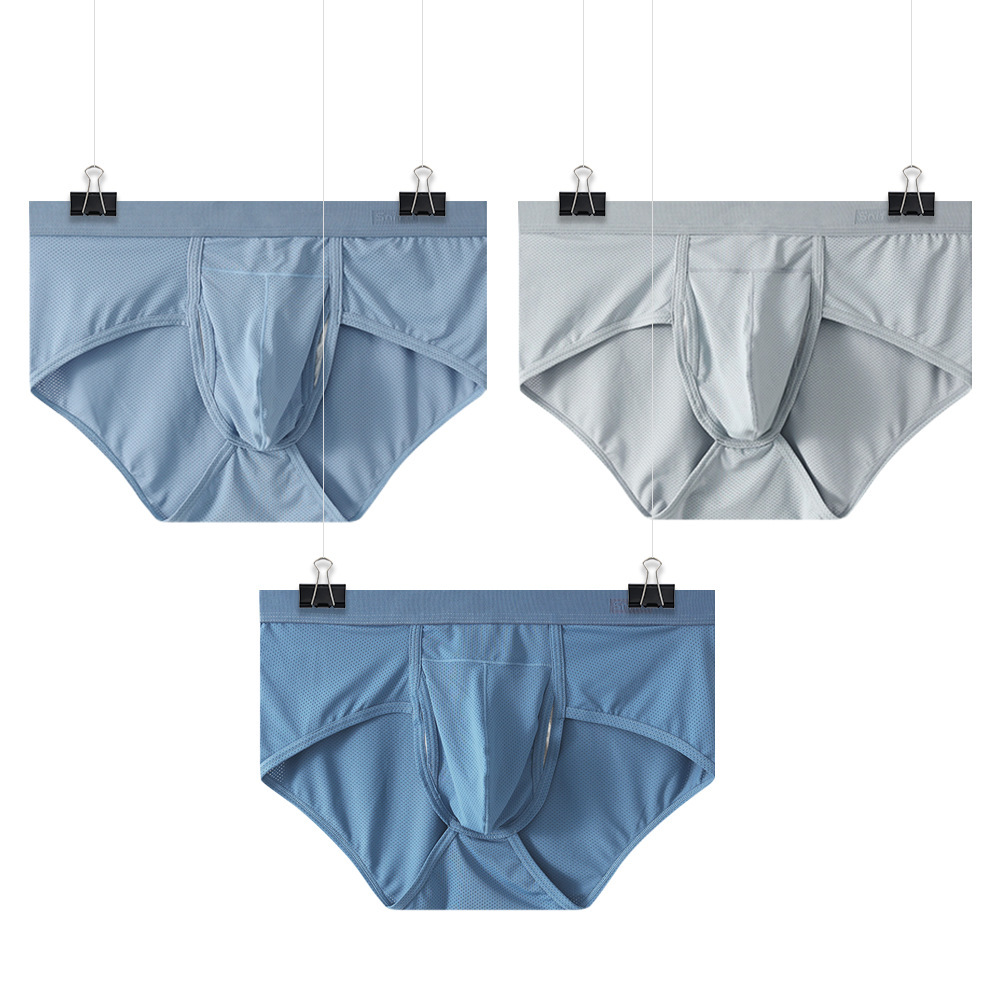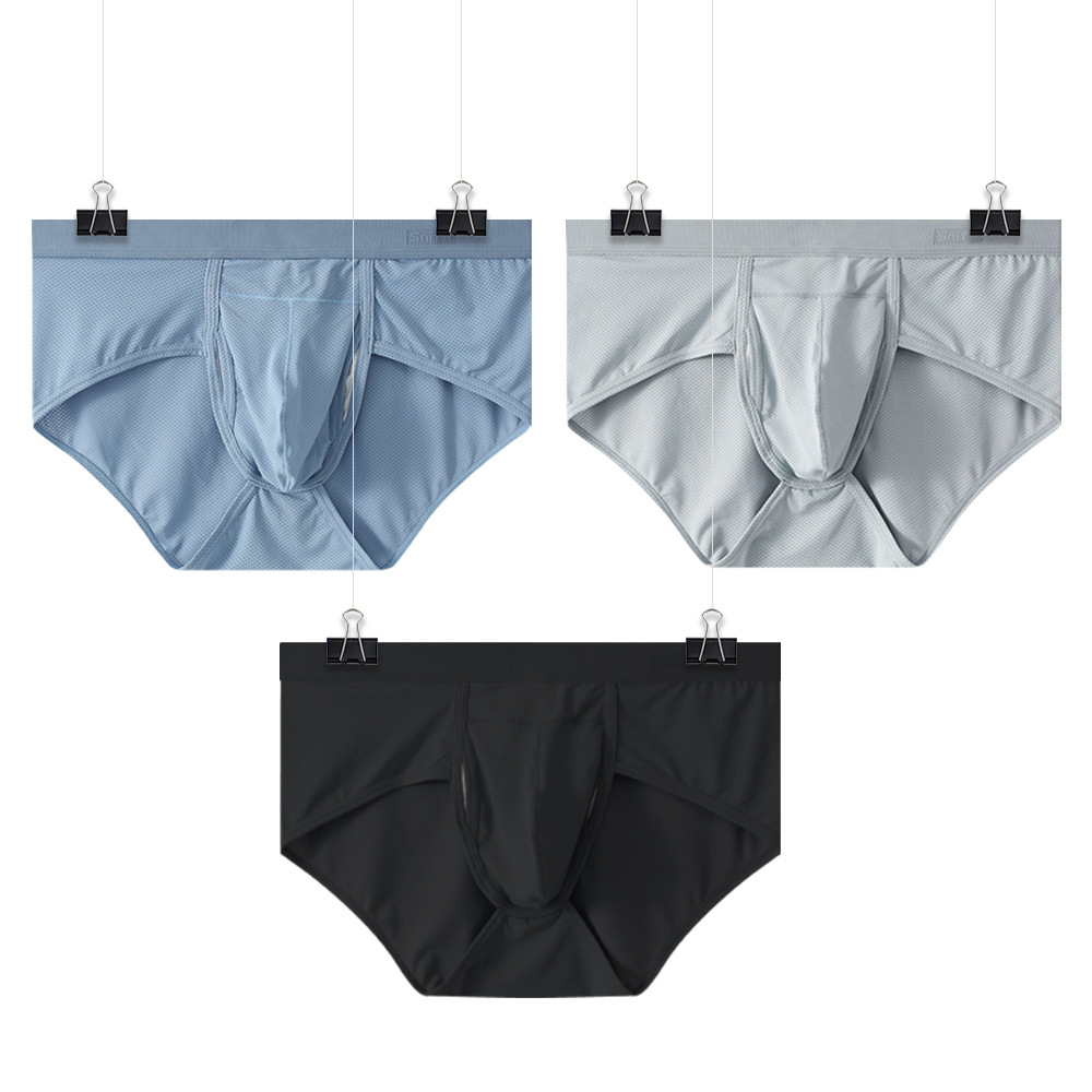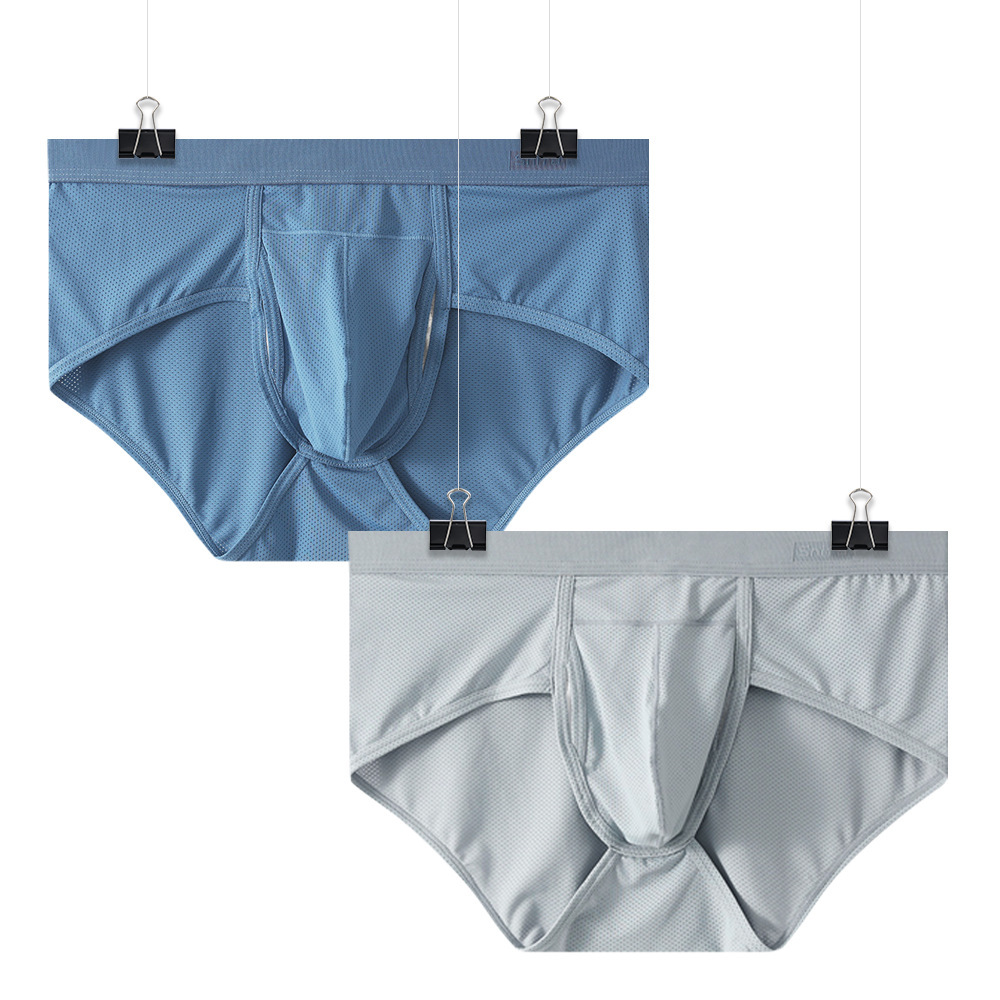 새로운 여름 큰 가방 총알 분리 된 아이스 실크 남성 브리프 얇은 쿨 메쉬 편안한 통기성