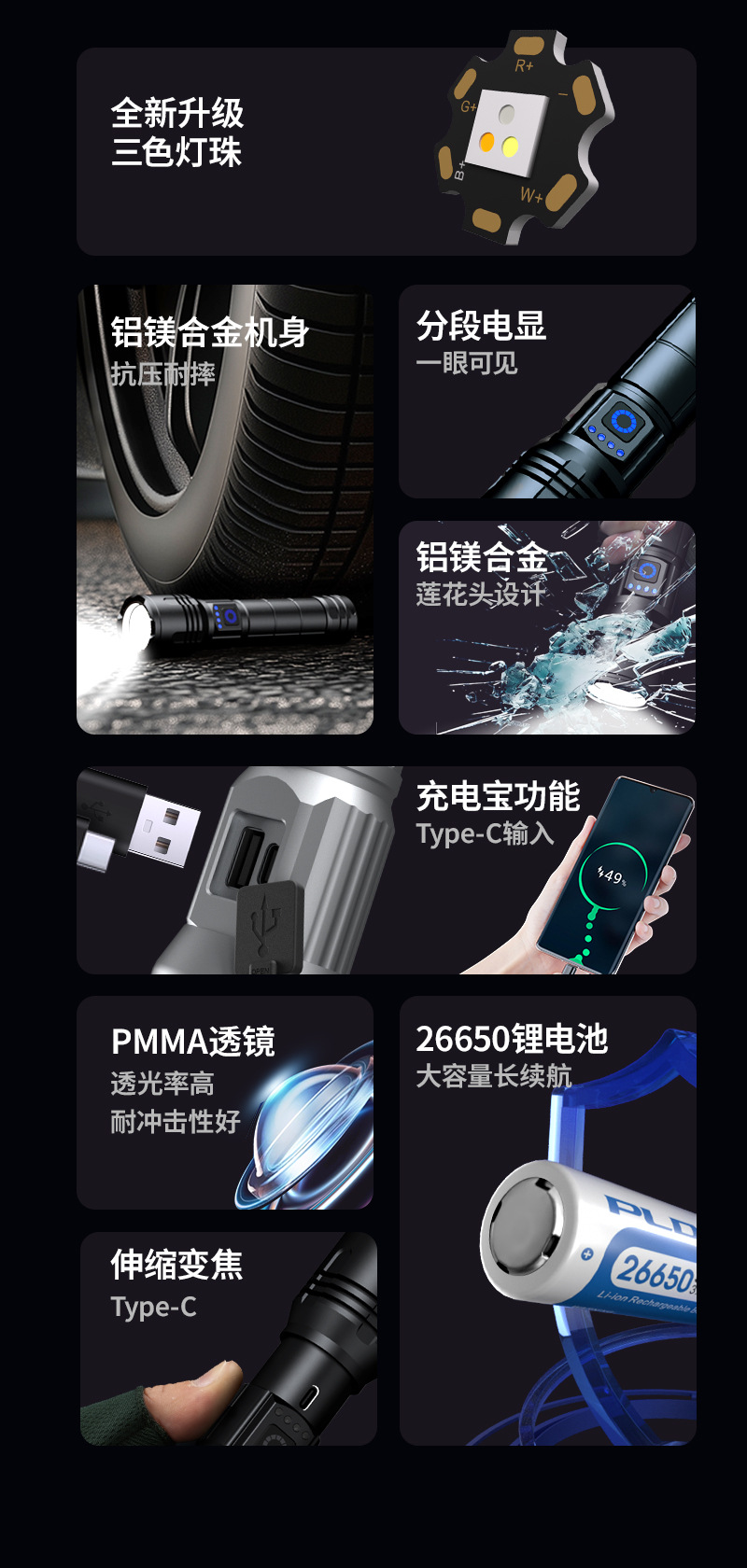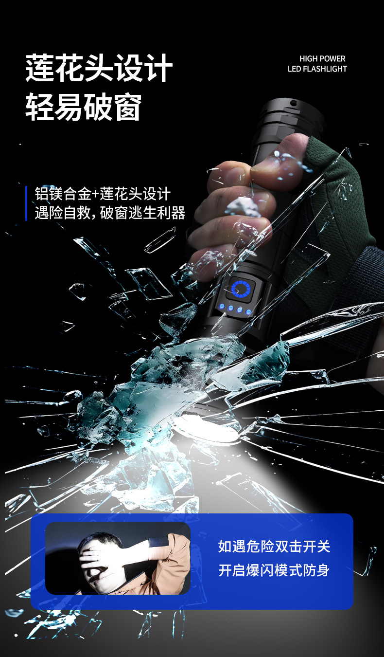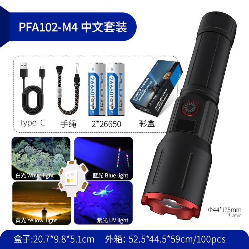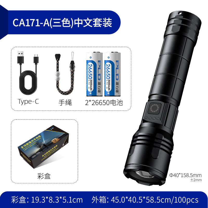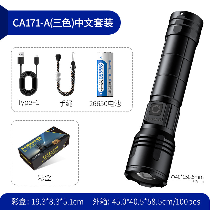 2025 뜨거운 판매 강한 빛 긴 샷 손전등 3 색 빛 슈퍼 밝은 줌 충전식 긴 생활 홈 야외