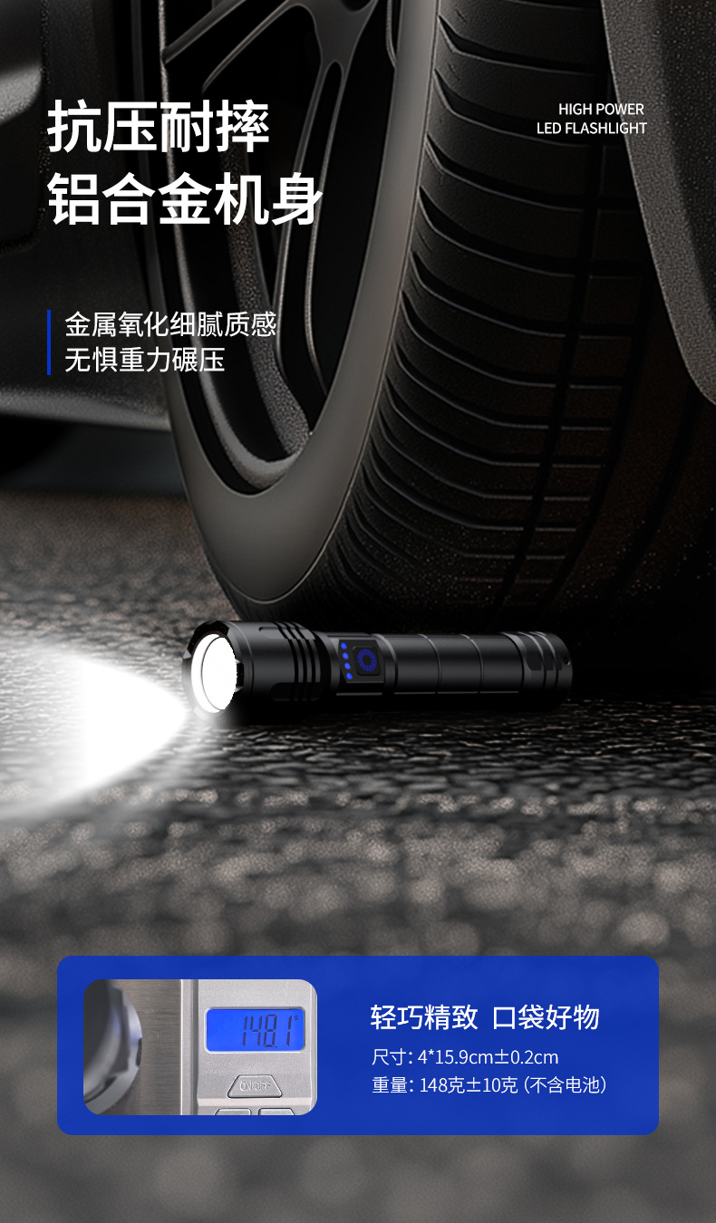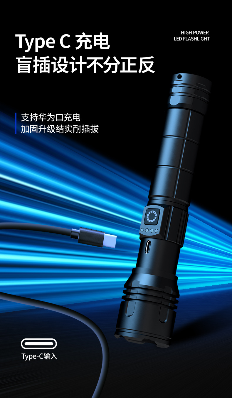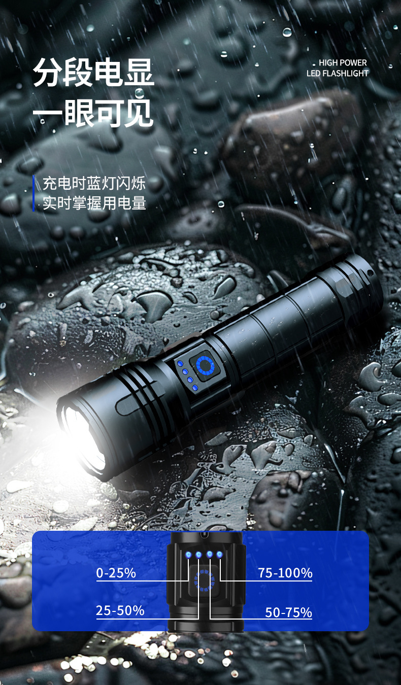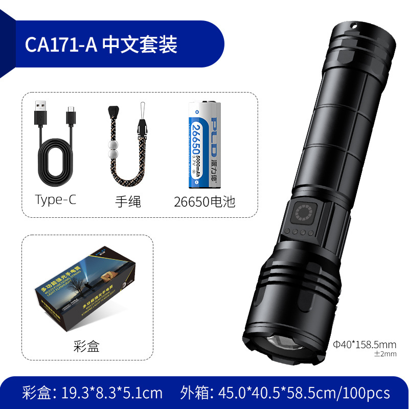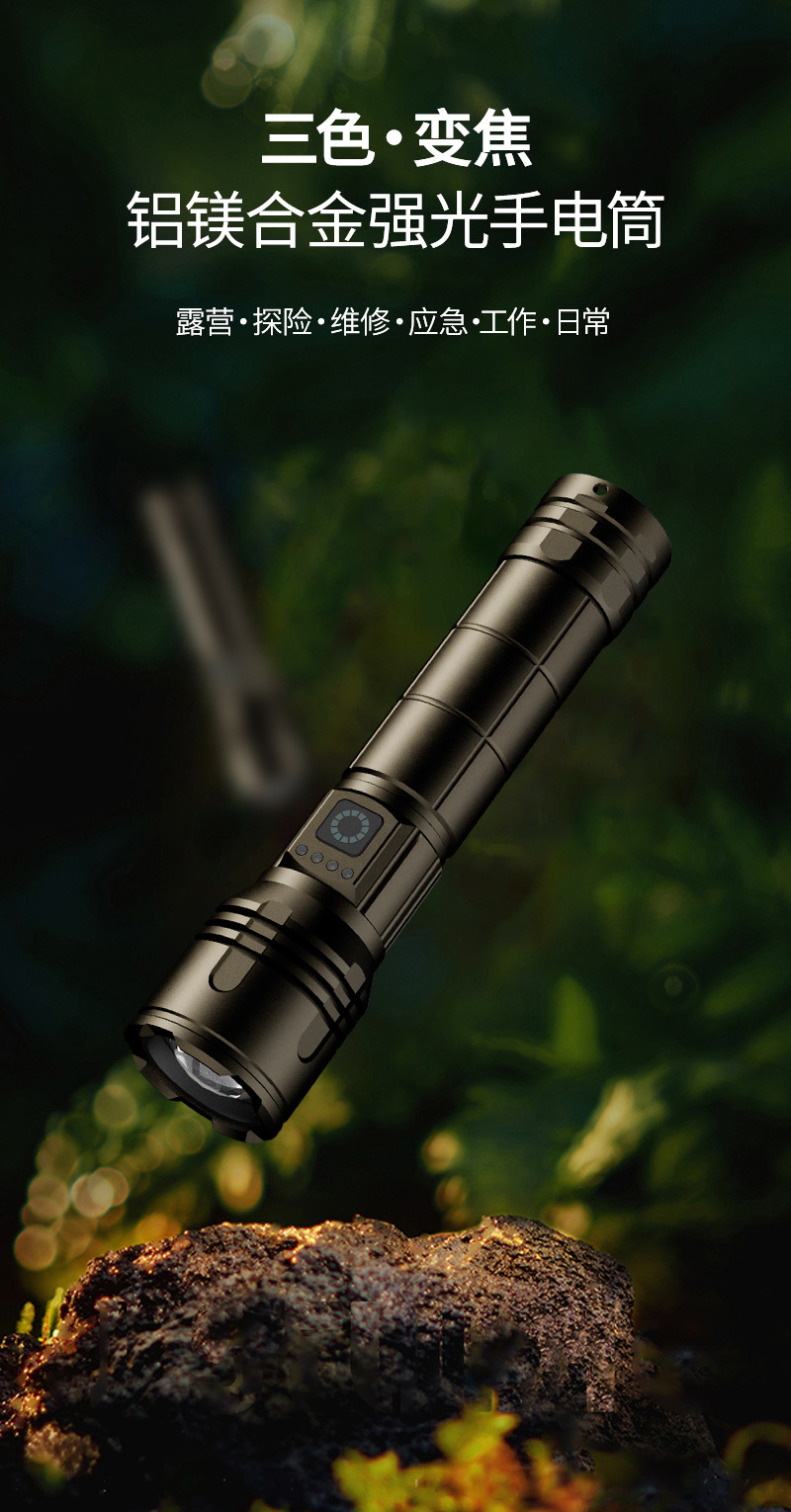 2025 뜨거운 판매 강한 빛 긴 샷 손전등 3 색 빛 슈퍼 밝은 줌 충전식 긴 생활 홈 야외스토어 가기