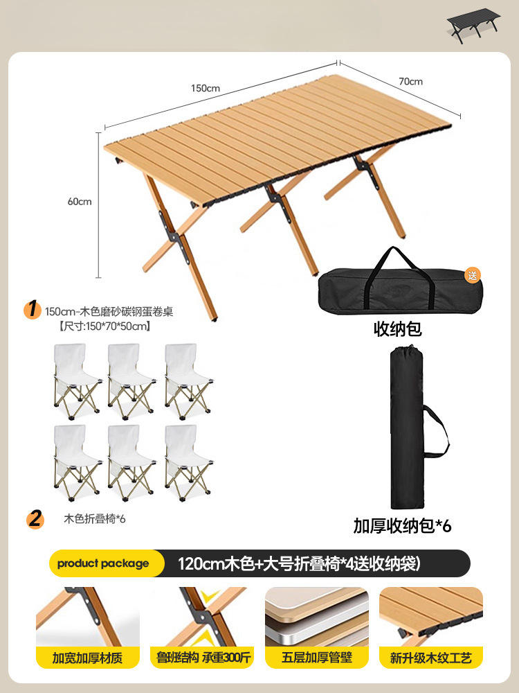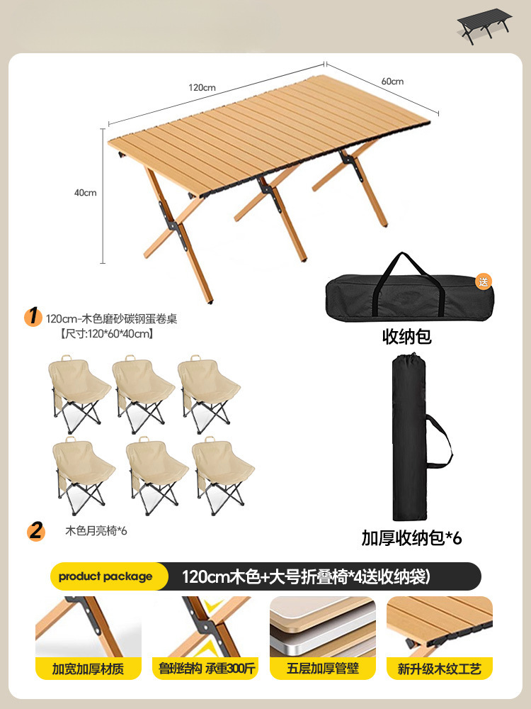Yumi 캠핑 테이블과 의자 야외 접이식 테이블 피크닉 테이블 휴대용 계란 롤 테이블 캠핑 장비 피크닉 장비 전체 세트스토어 가기