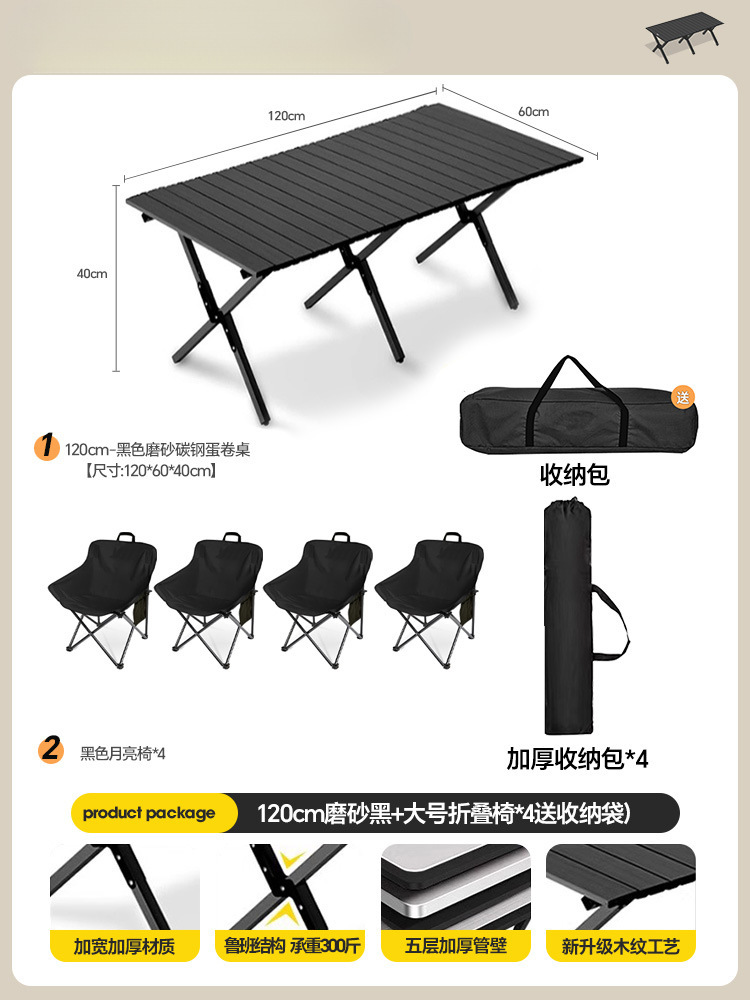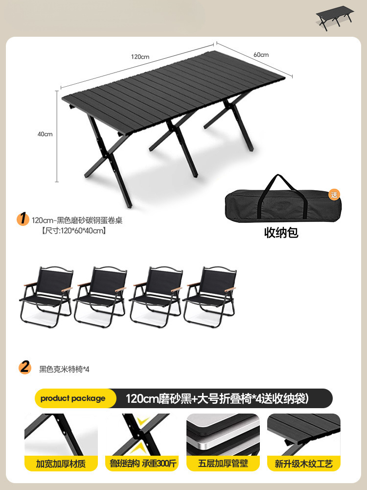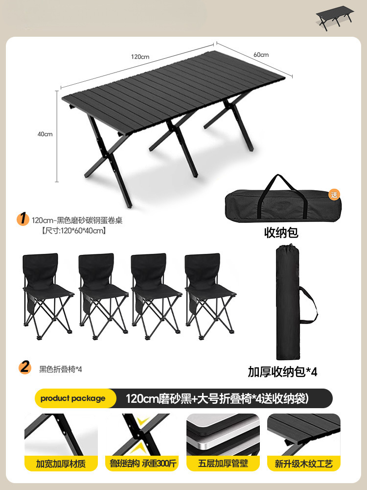 • 【】120cm 매트 블랙+접이식 의자*4+수납가방
