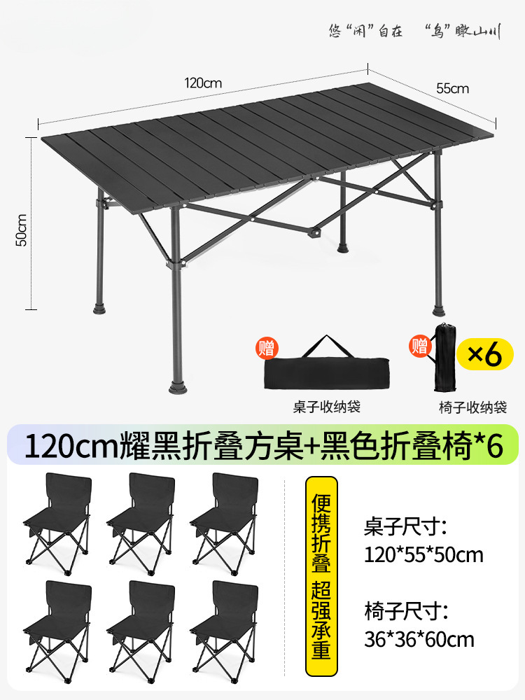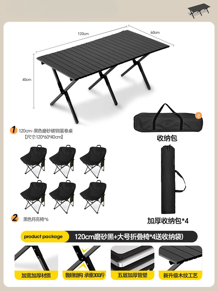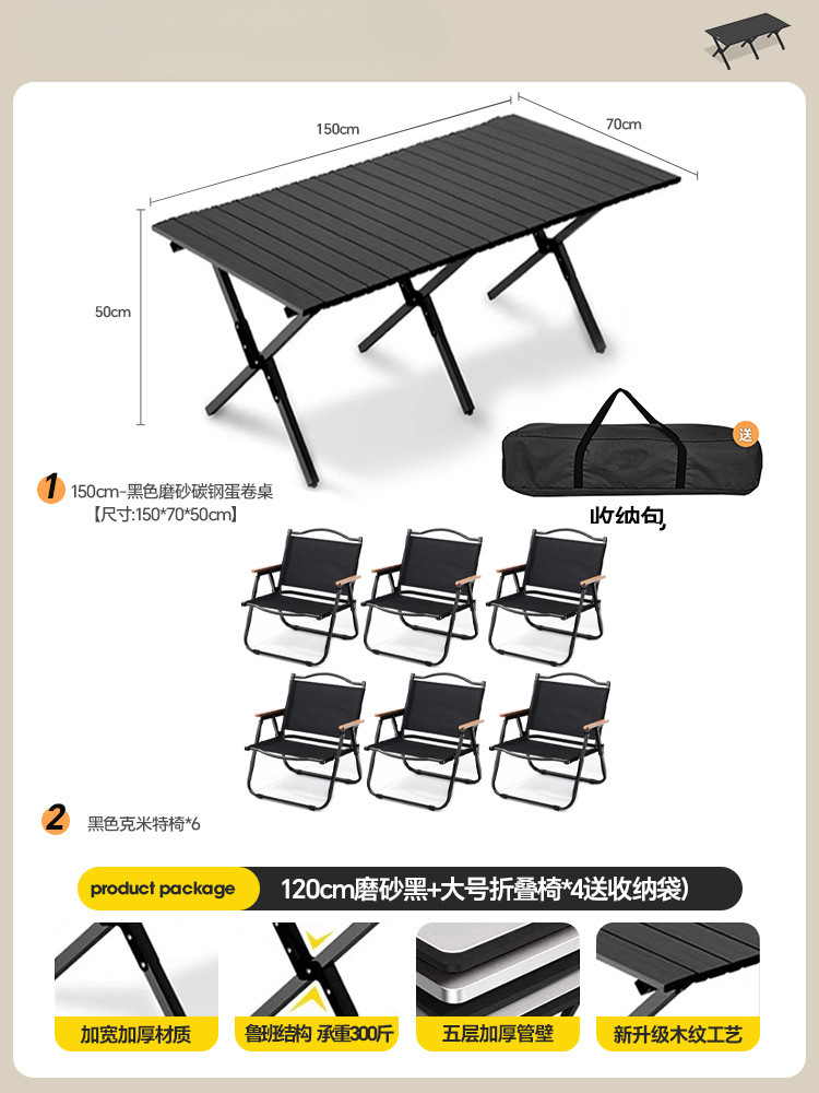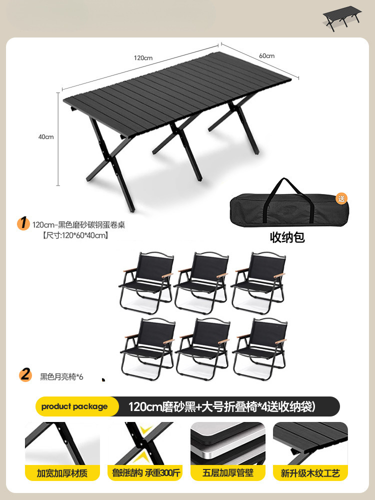 • 120cm 매트 블랙+접이식 의자*6+수납가방