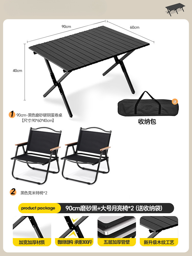 • 90cm 매트 블랙+문 체어*2+수납 가방