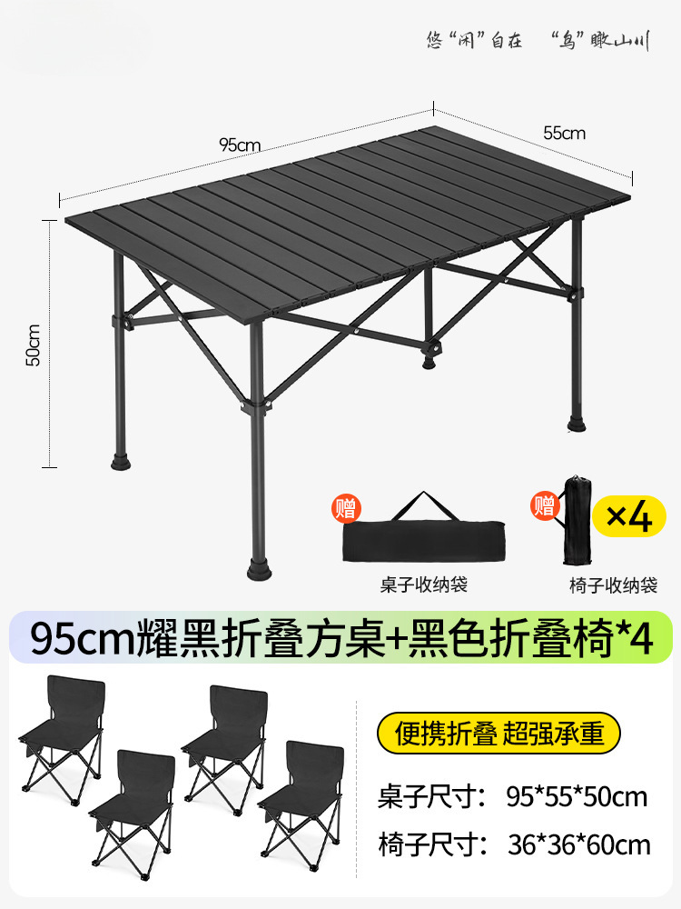 • [블랙] 95cm 길이의 테이블 + 접이식 의자*4 + 수납가방
